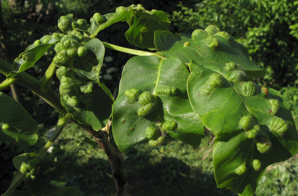 Poškození listů vlašského ořešáku vlnovníkem