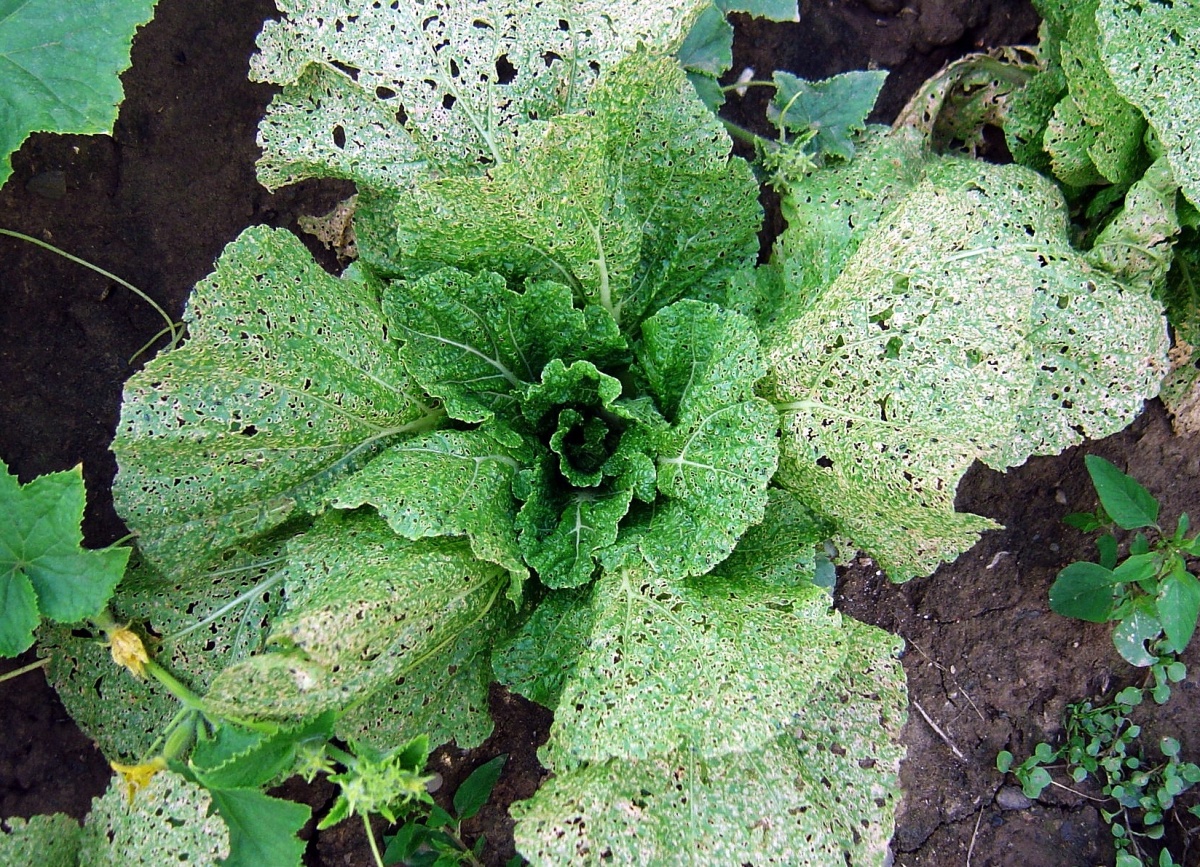 Poškození pekingského zelí dřepčíky