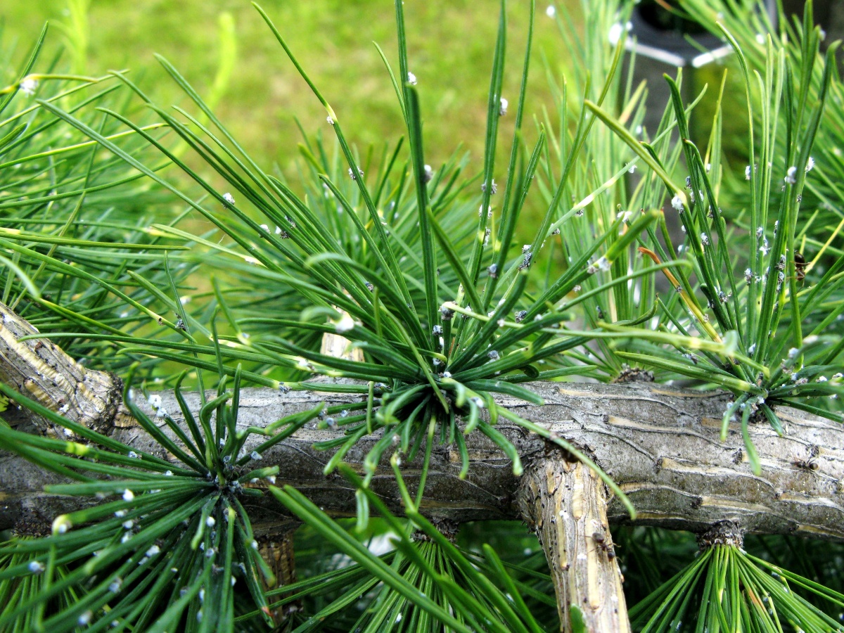 Mšice korovnice na jehlicích modřínu