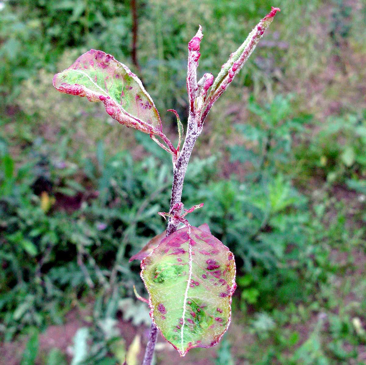 Bradavičnatost listů způaobená vlnovníkem hrušňovým