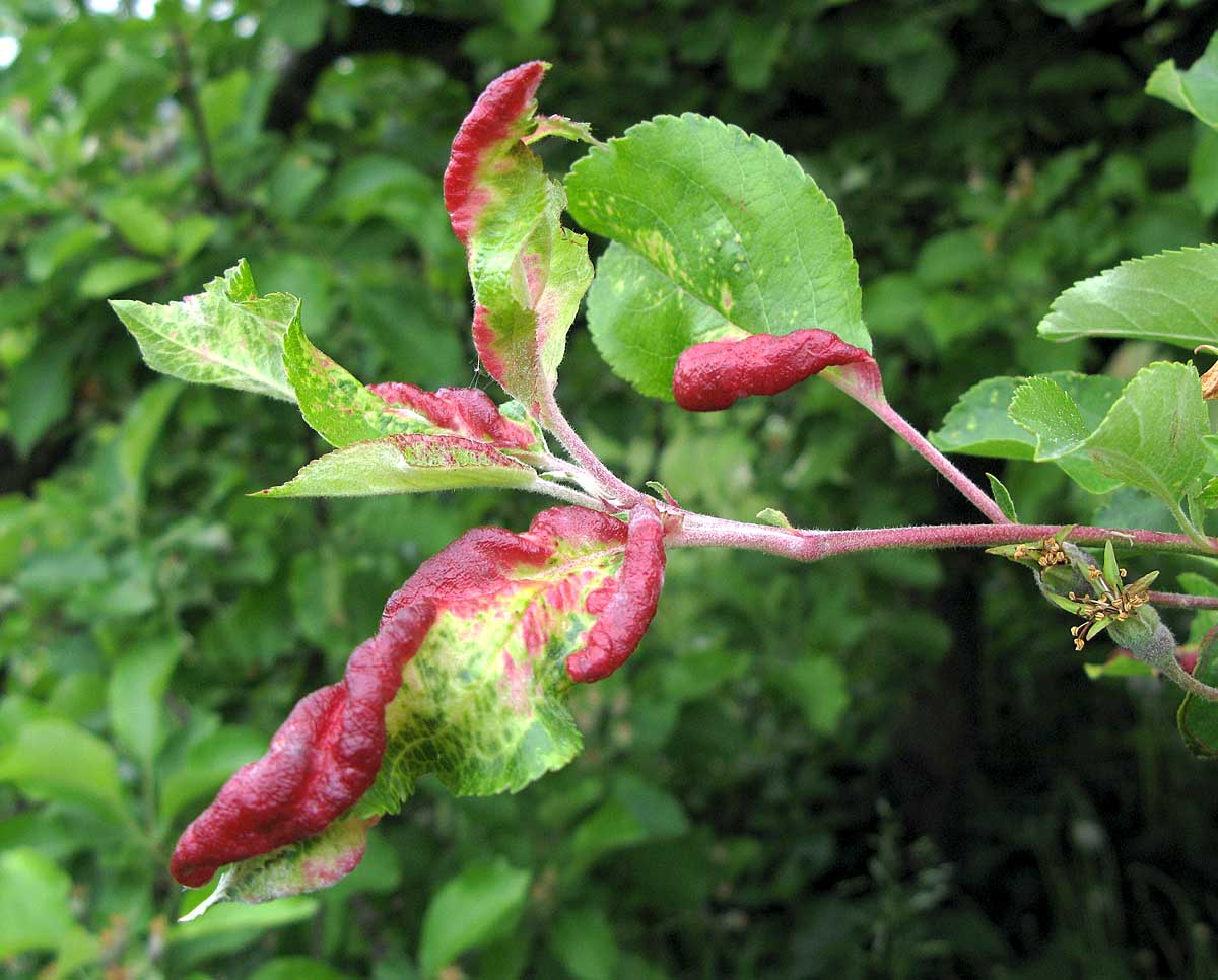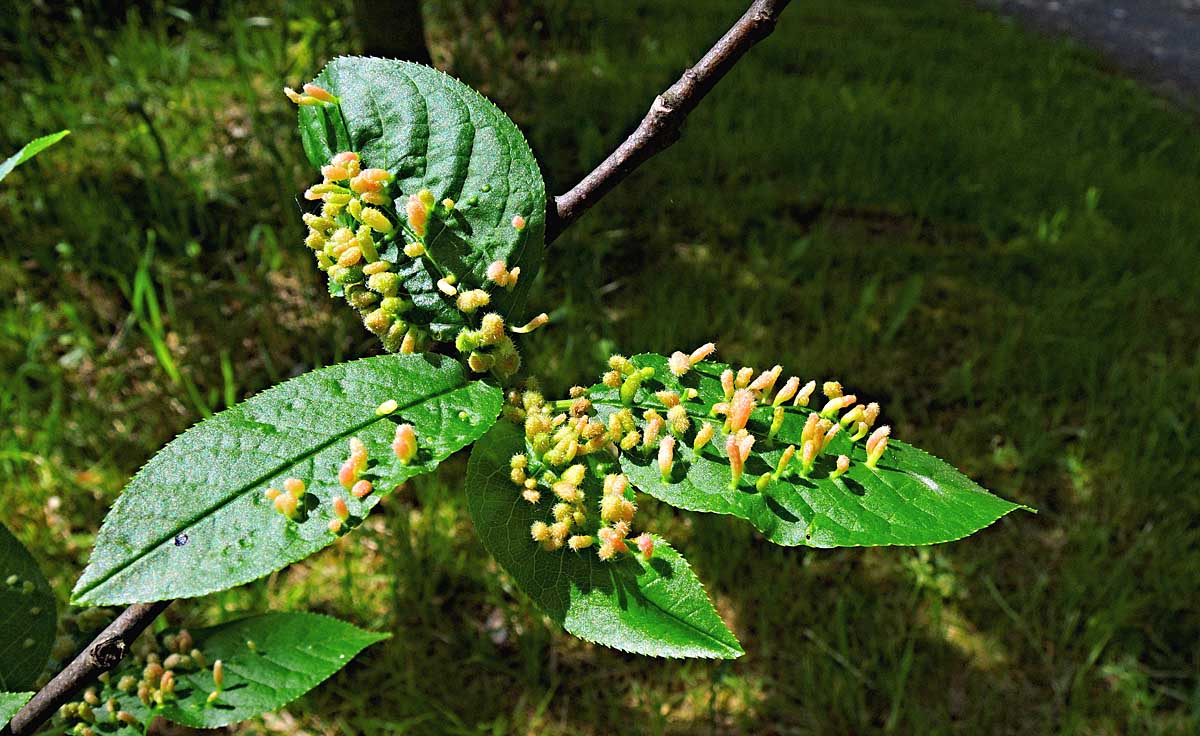 Výrůstky na listu švestky způsobené hálčivcem švestkovým