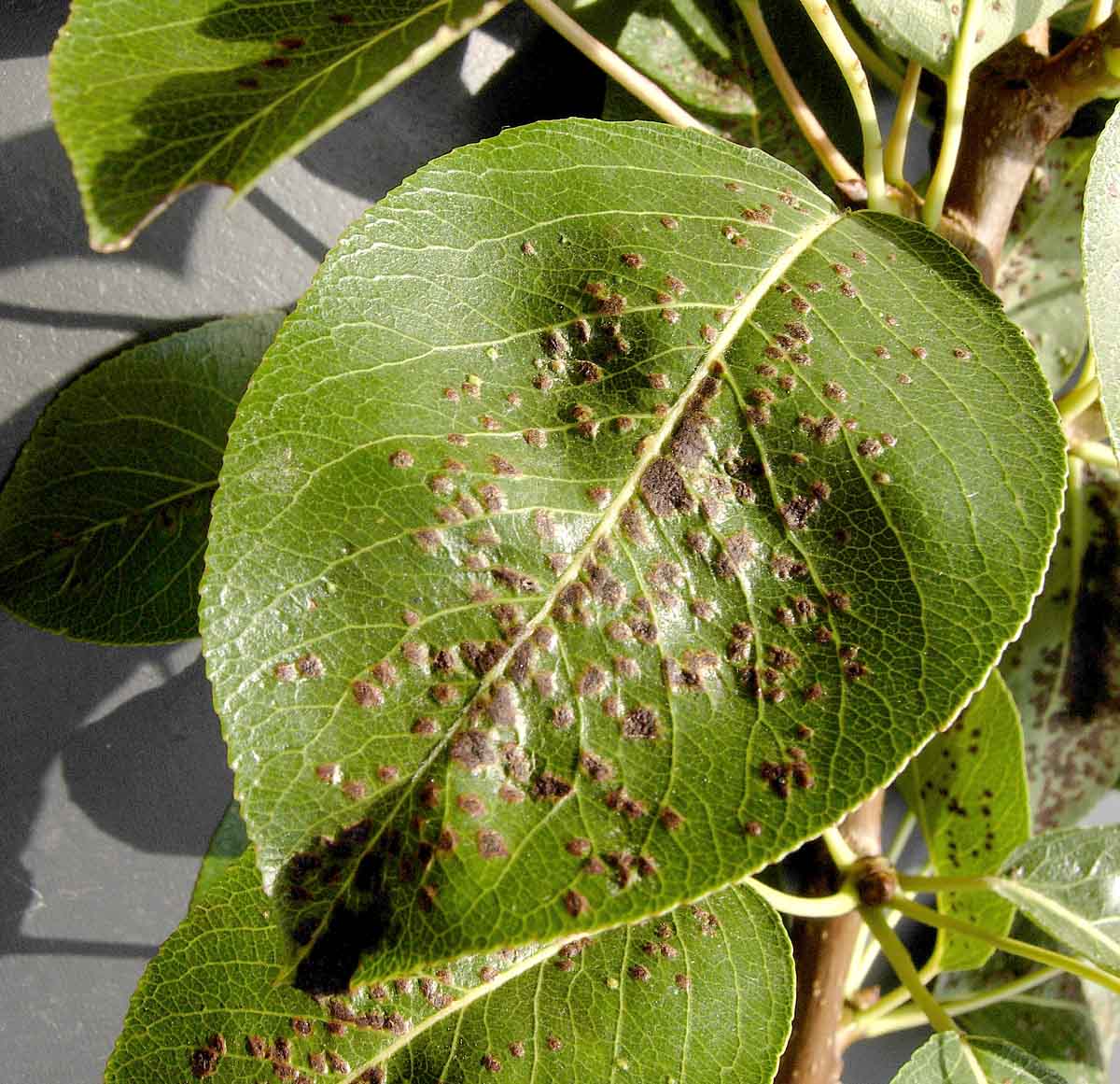 Rzivost hrušně na listech