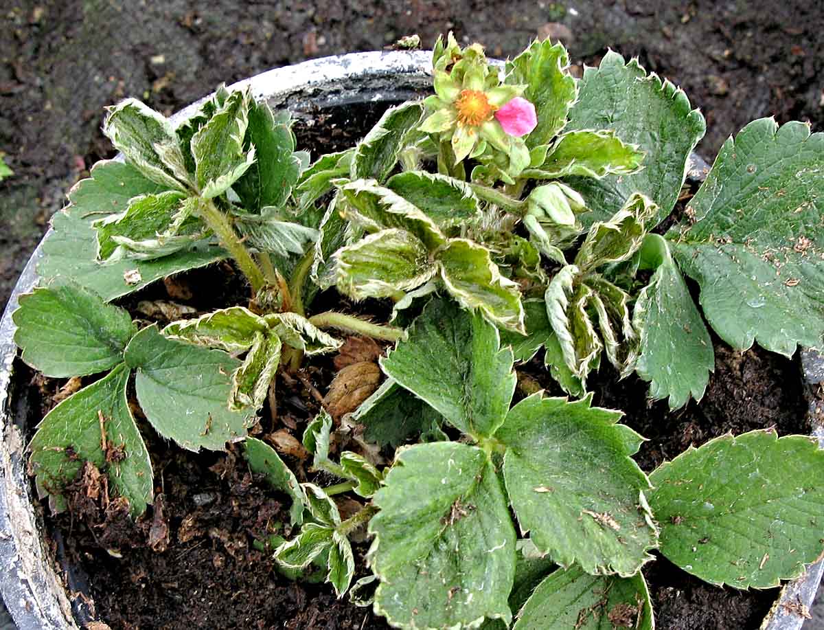Roztočík jahodníkový saje na srdéškových listech