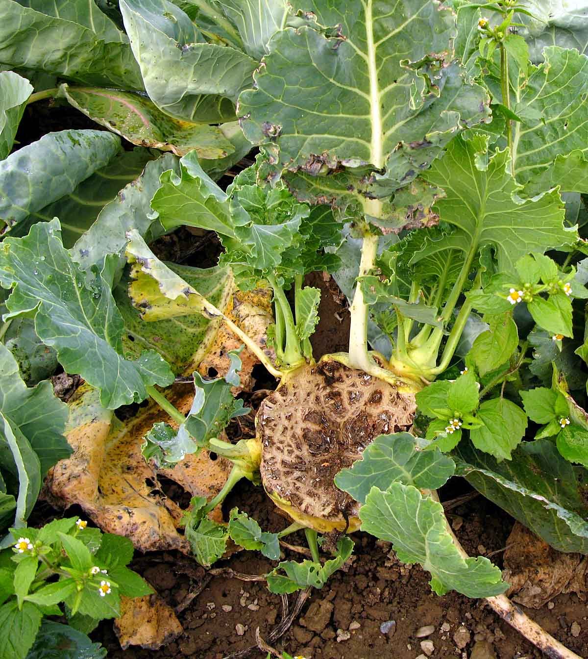Vyskytuje se zejména u květáku a kedluben. Nejčastěji je to způsobováno růstovým stresem (šokem) u předpěstované sadby - náhlé změny, mráz, sucho aj. U květáku může být také hlavní příčinou nedostatek přijatelného molybdenu, případně i bóru. Ze škůdců mohou vyslepnutí způsobit svými požerky na vegetačním vrcholu (srdéčku) mladých rostlin také larvy plodomorky zelné, krytonosce čtyřzubého. Toto poškození může také způsobit napadení mladých rostlin dřepčíky nebo mšicí zelnou.