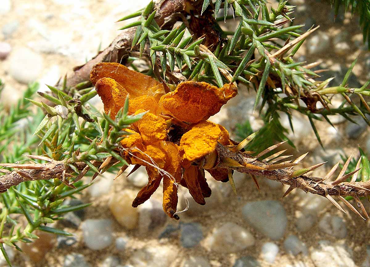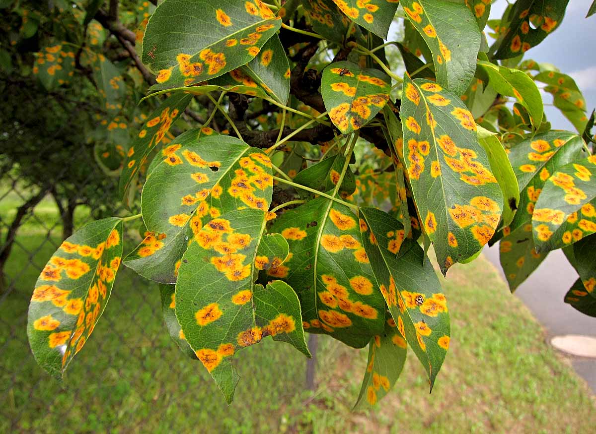 Napadení jalovce původcem rzivosti hrušně