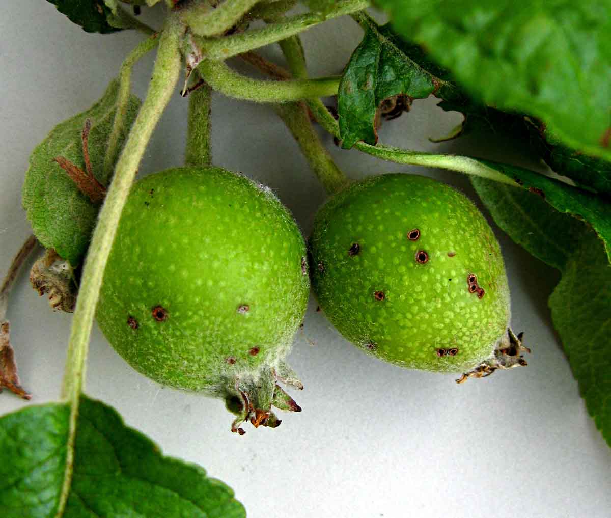 Strupovitosti jabloně na listech