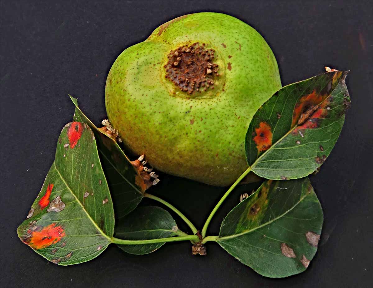 Tato nápadná houbová choroba (Gymnosporangium sabinae) zejména postihuje listy hrušní. Jednotlivé odrůdy hrušní jsou k chorobě různě náchylné. Při silnější infekci dochází k redukci nárůstu letorostů, velikosti listů i plodů. Jedná se o dvoubytnou rez, jejímž mezihostitelem (sekundárním hostitelem) je rod hrušeň a hlavním (primárním) hostitelem některé druhy jalovce - především jalovec čínský a zvláště jeho některé kultivary - jalovec prostřední. Někdy uváděný jalovec klášterský je napadán jen ojediněle. Hostiteli rzi hrušňové nejsou příbuzné rody čeledi cypřišovité: cypřišek, zerav ani zeravec. Rzivost hrušně je škodlivé onemocnění jak pro hrušeň, tak pro hostitelské druhy jehličnanů. Napadené jalovce mají světlejší zabarvení, slabší růst, někdy zasychají větvičky a pro hrušně zůstávají trvalým zdrojem infekce. Silně napadené keře mají nižší tržní i sadovnickou hodnotu.