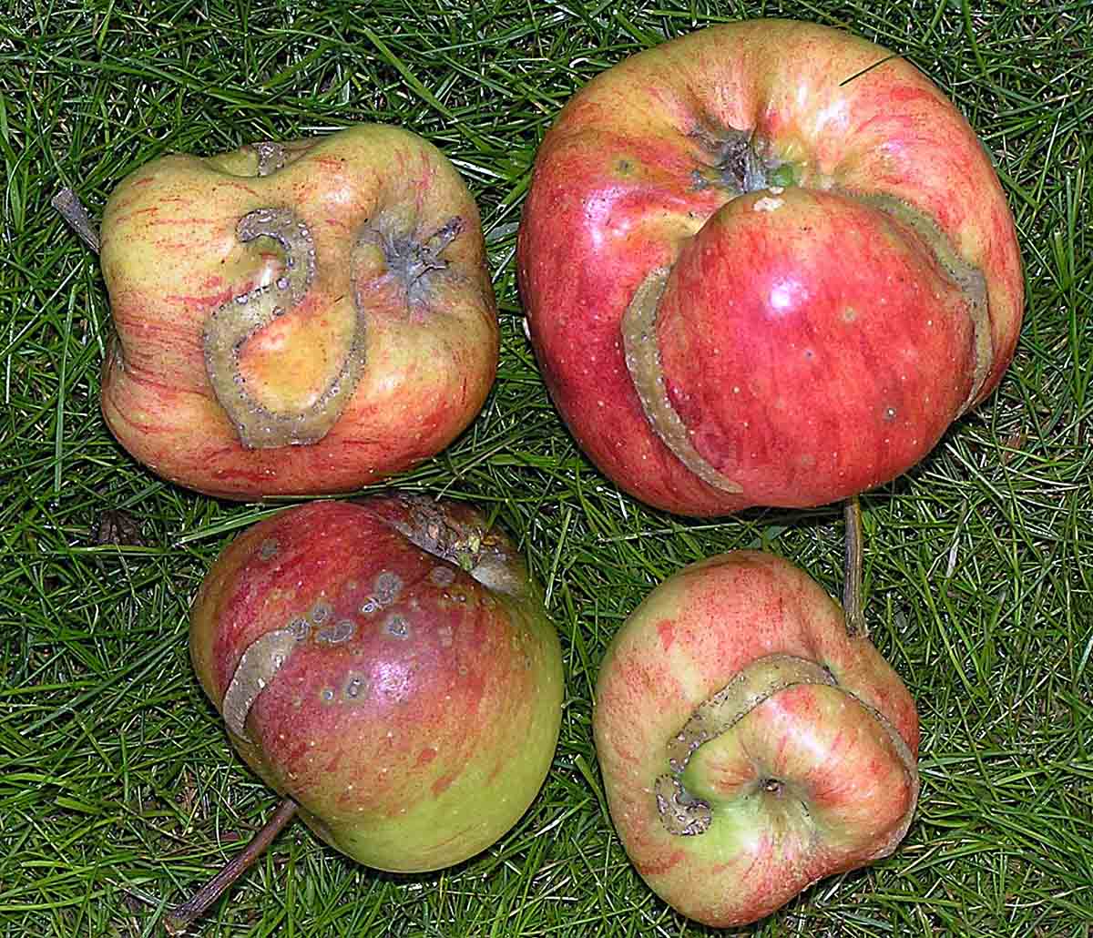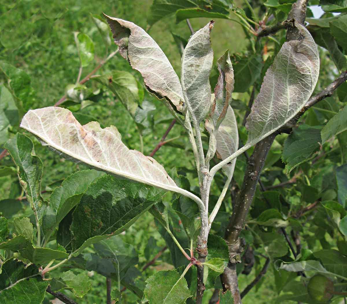 Padlí jabloně (Podosphaera leucotricha) vytváří bělavé povlaky na listech, květech, letorostech a mladých plodech. Silněji napadené části hnědnou a zasychají. Na plodech je kromě toho i příčinou mramorovité korkovitosti (rzivosti). Při silnějším napadení dochází k tvorbě malých listů, redukci přírůstků až k zasychání silně napadených letorostů a následné zmenšení velikosti plodů. Přezimuje myceliem v pupenech, ze kterých se v následujícím roce šíří. Infekce většinou začíná od období 7–10 dnů před květem a končí v červenci. Optimální pro rozvoj infekce je vyšší teplota a vyšší nebo kolísavá vzdušná vlhkost.