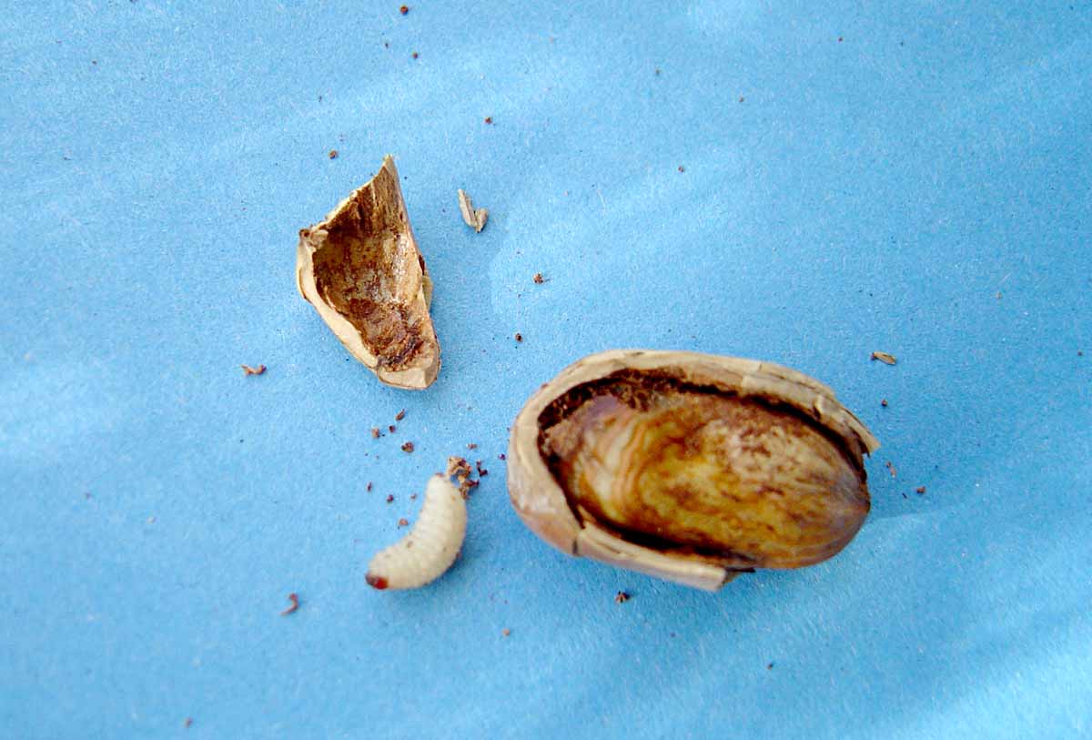 Lískové oříšky bývají pravidelně poškozovány larvami brouka nosatce lískového. V době přemnožení a nižší násadě, může tento škůdce způsobit až 100% poškození lískových oříšků. Nosatec lískový je 6–9 mm dlouhý a díky zbarvení těla (tmavě olivově hnědý, nepravidelně světle skvrnitý) velmi nenápadný brouk. Má dlouhý, silněji prohnutý nosec se světlými zalomenými tykadly. Larvy, které se živí vyžíráním jader, jsou rohlíčkovité, beznohé, 10 mm dlouhé, mléčně bílé s hnědou hlavou. Nosatec lískový má jednu generaci v roce. Přezimují larvy škůdce v půdě pod lískami v hloubce 10 až 25 cm. Na jaře se kuklí, ale některé larvy „přelehávají“ a ke kuklení dochází až za 2–3 roky. Brouci se většinou líhnou během května. Na lískách pak žijí v červnu a druhé polovině července. Při úživném žíru a později, zejména v době kladení vajíček, vykusují chodbičky do mladých lískových oříšků. Takto poraněné lískové oříšky jsou za vlhka druhotně napadány houbami, nejčastěji moniliovou hnilobou (Monilia laxa). Napadené plůdky se přestávají vyvíjet, černají a opadávají. Brouci jsou za slunečných dnů velmi pohybliví, rychle a poměrně daleko létají. Při vyrušení, třeba jen po lehkém zatřesení větvemi, ihned padají k zemi (jako většina nosatců). Zde na nějakou dobu znehybní a předstírají, že jsou mrtví. To můžeme využít k jejich signalizaci a odchytu. Kladení vajíček probíhá (podle fenologické fáze v dané nadmořské výšce) na přelomu června až července. V této době není osemení plodů ještě dřevnaté a začíná se vyvíjet jádro. Samičky v něm vykusují chodbičku a na její dno kladou do každého plodu po jednom vajíčku, ze kterého se za 8–10 dnů líhnou larvy. Dospělé larvy během září opouštějí vykousaným otvorem oříšky a padají k zemi. Zavrtávají se do půdy, kde si vytvářejí hliněné komůrky, ve kterých přezimují. Ochrana před nosatcem lískovým je díky rozvleklému výskytu brouků velice obtížná. Nepřímou ochranou proti tomuto škůdci je na podzim prokypření půdy okolo keřů, čímž zničíme značnou část populace larev. Doporučuje se také během května až června při „rojení“ brouků jejich sklepávání a následné ničení. Z dalších uváděných možností je hubení larev a brouků slepicemi, hlavně během května, kdy vylézají brouci ze země a v době, kdy larvy opouštějí oříšky, tedy asi od konce srpna do září. Při využití slepic jako predátorů bylo zjištěno, že účinnost hejna se až o 30 % zvyšuje, pokud jsou s kohoutem, který slepice cíleně vodí, neboť červi patří mezi jeho oblíbené pochoutky. Účinnost výše uvedených biologických opatření však může snižovat nálet brouků z okolí, kde se ochrana neprovádí. Chemická ochrana se běžně proti nosatci lískovému neprovádí a ani nejsou proti tomuto škůdci povoleny žádné přípravky. V lokalitách, kde pravidelně škodí, můžeme lísky ošetřit v době „rojení“ dospělých brouků (květen, červen) ještě před kladením samiček, běžnými insekticidy povolenými např. proti květopasu či obaleči jablečnému. Ošetření je třeba, při silném výskytu, alespoň 2× zopakovat ve 14denních intervalech. Termín prvního ošetření si můžeme určit sklepáváním nosatců z korun lísek ve 3denních intervalech na rozprostřené plachty. Kladení samiček většinou probíhá v teplotně normálních letech v nadmořské výšce okolo 300 m n.m. převážně v poslední dekádě června a v první dekádě července. V této době oříšky již téměř dorostly do konečné velikosti, ale jsou ještě bez jádra. Protože však brouci kladou vajíčka postupně, vyplatí se přikročit za 14 dnů k opakování postřiku. Fenologicky se jedná o dobu, kdy uvnitř oříšků jsou již patrná 3–5 mm velká jádra. V nižších nadmořských výškách, pod 300 m n.m. je vhodnou dobou pro první ošetření termín od 15. do 20. června, druhé ošetření pak mezi 1. až 5. červencem. V ostatních nadmořských výškách je vhodné načasovat ošetření na základě výskytu nosatců a sledování vývojové fáze oříšků. Nosatec lískový však bývá proti insekticidům poměrně dost odolný. V případě škodlivosti přípravku pro včely je nutné chránit kvetoucí rostliny pod keři a v okolí keřů!