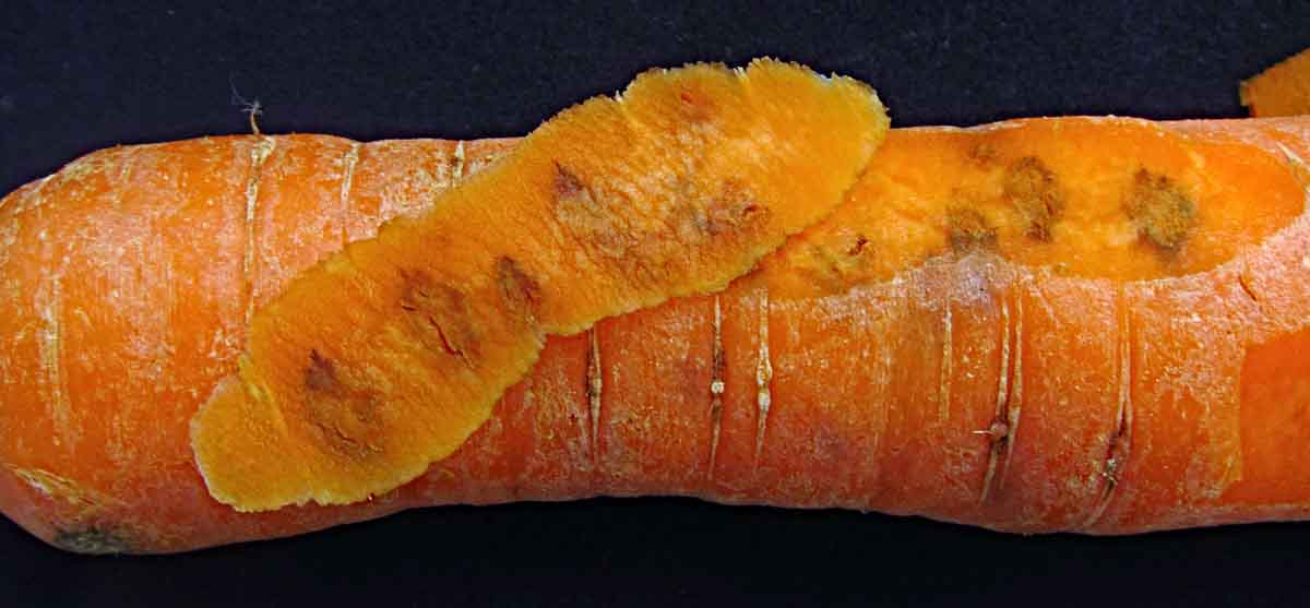 Kromě sporadických výskytů merule mrkvové, mšice mrkvové a mšice hlohové - ta škodí i na kořenech mrkve - je jedním z nebezpečných škůdců mrkve pochmurnatka mrkvová. Způsobuje známé nepravidelné chodbičky pod povrchem kořenů. Může poškozovat rovněž celer, pastinák i petržel. Škůdce má 2–3 generace za rok. První generace se objevuje ve druhé polovině května. Druhá generace nalétává od konce července do konce srpna. Přednostně jsou napadány husté porosty a vlhčí, uzavřená před větrem chráněná stanoviště. Preventivní ochranou je dobrá agrotechnika, hluboká orba, odstraňování posklizňových zbytků po sklizni. Pěstování v místech s větším prouděním vzduchu na hrůbcích (jako brambory), nehnojit chlévskou mrvou či močůvkou. Chemická ochrana je kvůli dlouhodobému kladení vajíček problematická. Na pochmurnatku jsou povoleny přípravky: Benevia, Danadim Progress, NeemAzal-T/S, Scatto a na mšice: Calypso 480 SC, Nurelle D, Pirimor 50 WG, Plenum, Scatto.