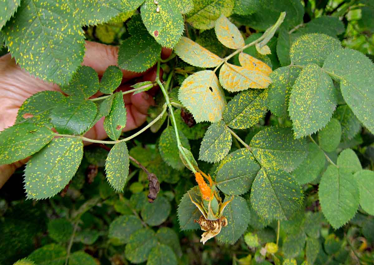 Sledujte také výskyty chorob - černou skvrnitost listů (Diplocarpon rosae), padlí růžové (Sphaerotheca pannosa) a rez růžovou (Phragmidium mucronatum) a podle potřeby je včas ošetřete, např. přípravky: Collis, Horizon 250 EW, Ortiva, Saprol - Proti houbovým chorobám růží, Score 250 EC aj.