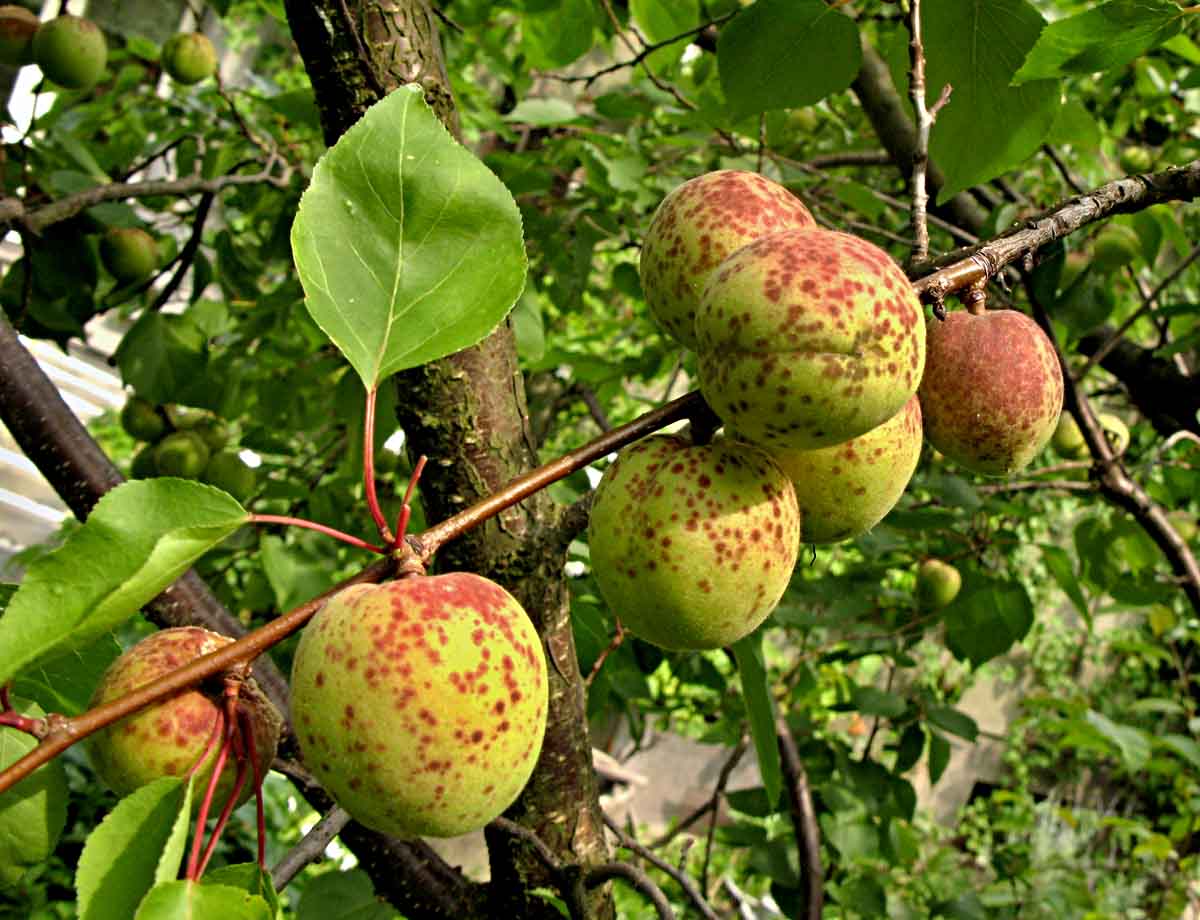 Na některých lokalitách se při vlhkém počasí mohou počátkem června objevit na meruňkách, především na plodech blízko stopky, šedohnědé skvrny. Způsobuje to houbová choroba strupovitost peckovin (Venturia carpophila). Choroba napadá zejména plody, ale také listy a letorosty. Nejčastěji bývají poškozeny plody v zahuštěných výsadbách a ve spodních částech severní strany koruny. Nejvíce jsou napadány plody meruněk, ale i broskvoní a mandloní, ojediněle i slivoní. Na plodech se vytvářejí (nejčastěji až ve stadiu dozrávání) drobné (2 až 5 mm), okrouhlé, šedé až šedočerné skvrny, často s tmavším lemem. Počet skvrn se postupně zvětšuje, skvrny tmavnou, korkovatějí a při větším počtu se spojují v nepravidelné plochy. Skvrny jsou většinou lokalizovány v blízkosti stopky (na horní části plodů). Napadené plody nerostou, jsou deformované a často praskají a následně jsou napadány moniliovou hnilobou. Choroba přezimuje na napadených větvích. Za vegetace se šíří konidiemi z napadených pletiv. Onemocnění se šíří především za deštivého a teplého počasí (optimum 25–30 oC). K infekcím dochází již 4.–6. týden po odkvětu, obvykle však až za deštivého počasí v průběhu června a července (meruňky) nebo července a srpna (broskve). Jednotlivé odrůdy jsou různě náchylné (z broskvoní především pozdní odrůdy). Napadení listů strupovitostí peckovin je jenom málo významné. Středy skvrn na listech hnědnou a usychají. Letorosty jsou poškozovány především u mandloní. Skvrny na letorostech jsou oválného tvaru. Základem ochrany je prevence, především volba lokality (nevysazovat citlivé odrůdy na uzavřená vlhká stanoviště) a zajištění vzdušnosti porostu a koruny stromů. Proti strupovitosti broskvoně a meruňky není v současné době povolen žádný fungicid. Využít lze vedlejší účinnosti přípravků povolených proti jiným houbovým chorobám broskvoně a meruňky: Abilis Ultra, Horizon 250 EW, Talent aj. K omezení výskytu choroby většinou postačuje ošetření v době zjištění prvních výskytů choroby. Při silném infekčním tlaku je vhodné při dodržení ochranné lhůty ošetření za 7–14 dnů zopakovat.