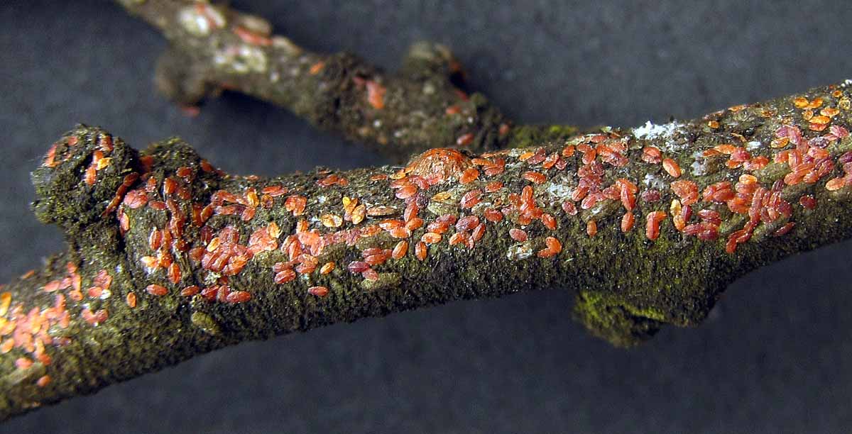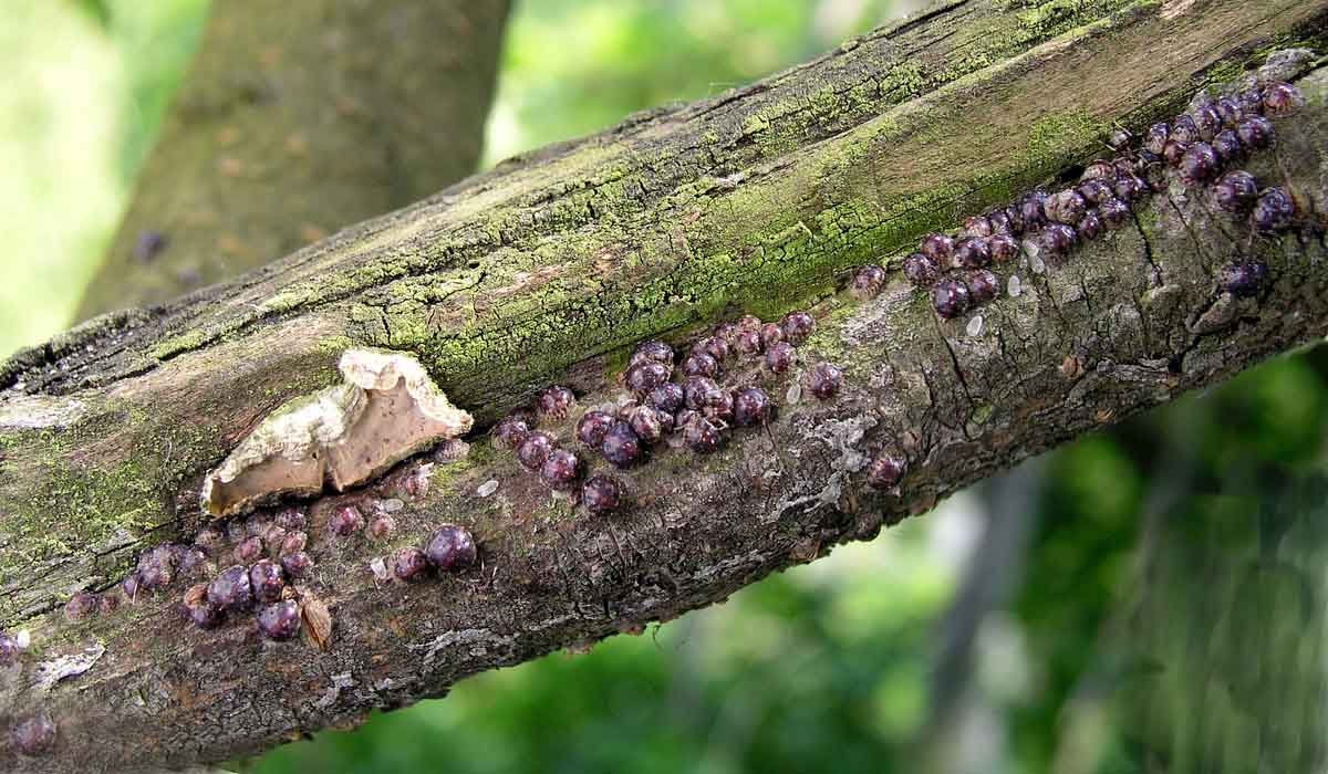 vyskytují se v trhlinách kůry v blízkosti pupenů |