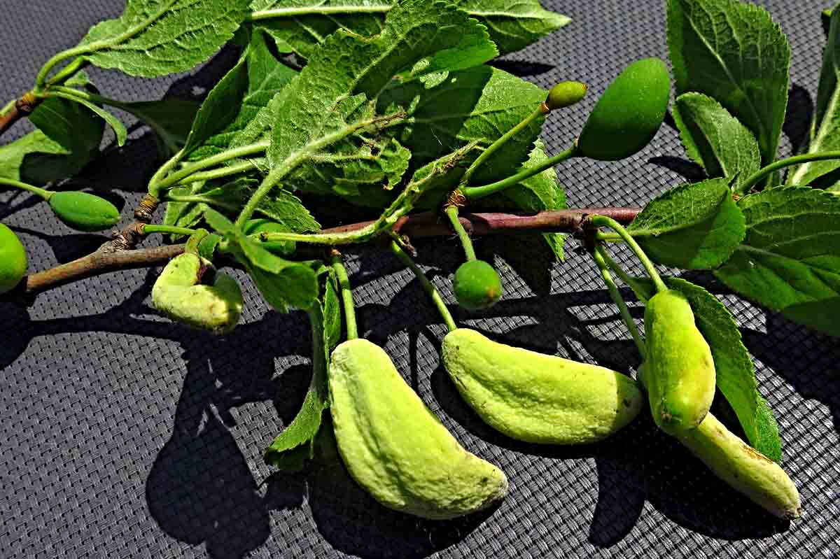 Při vlhčím a chladnějším průběhu jara (zvláště ve vyšších polohách) nelze na rizikových lokalitách vyloučit napadení plodů švestek puchrovitostí švestek (Taphrina pruni). Na jaře roku 2016 bylo na Střední Moravě v některých lokalitách touto chorobou napadeno až 90 % švestek, mirabolánu aj. peckovin.
