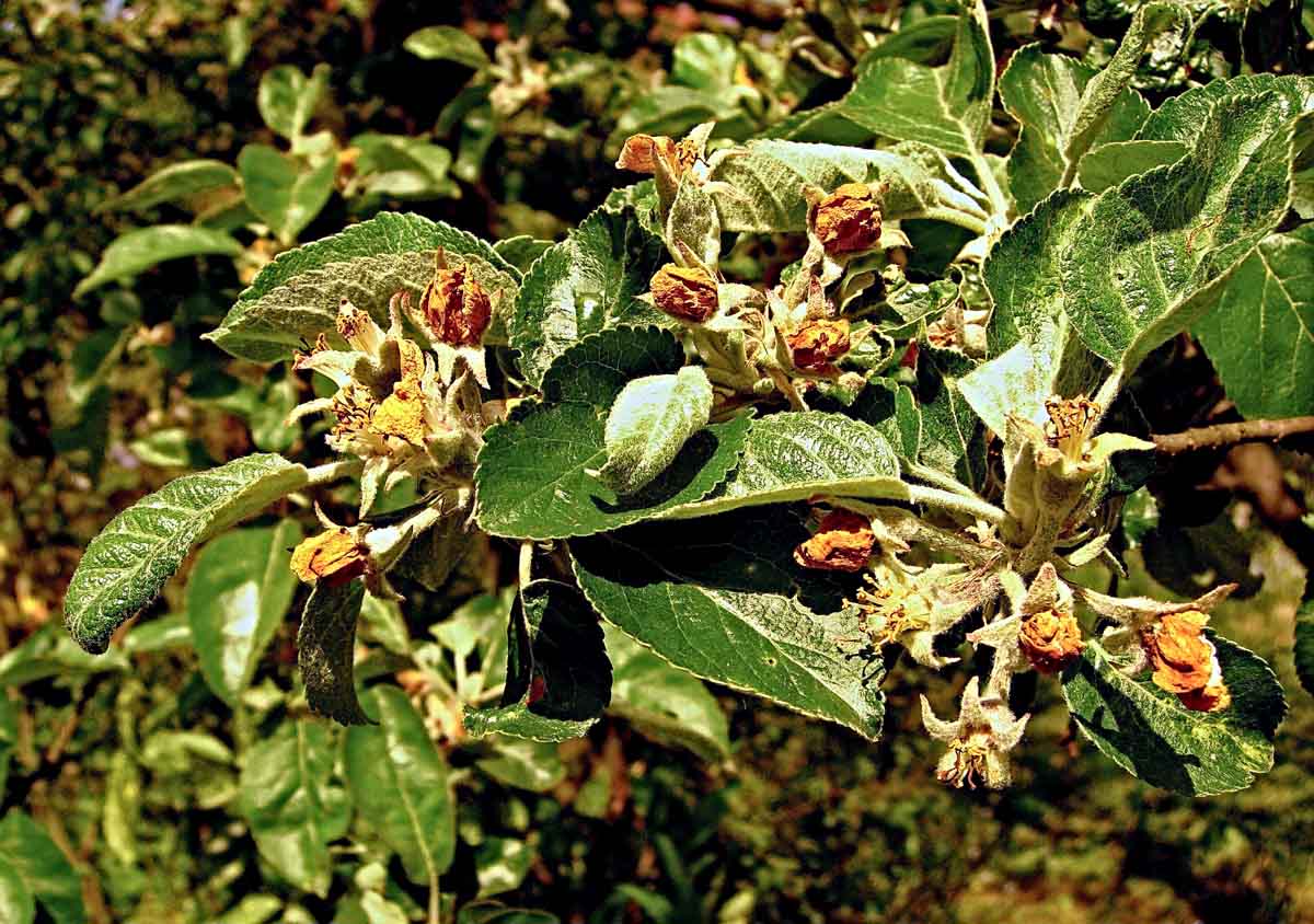 Štítenka zhoubná - štítky na jablku