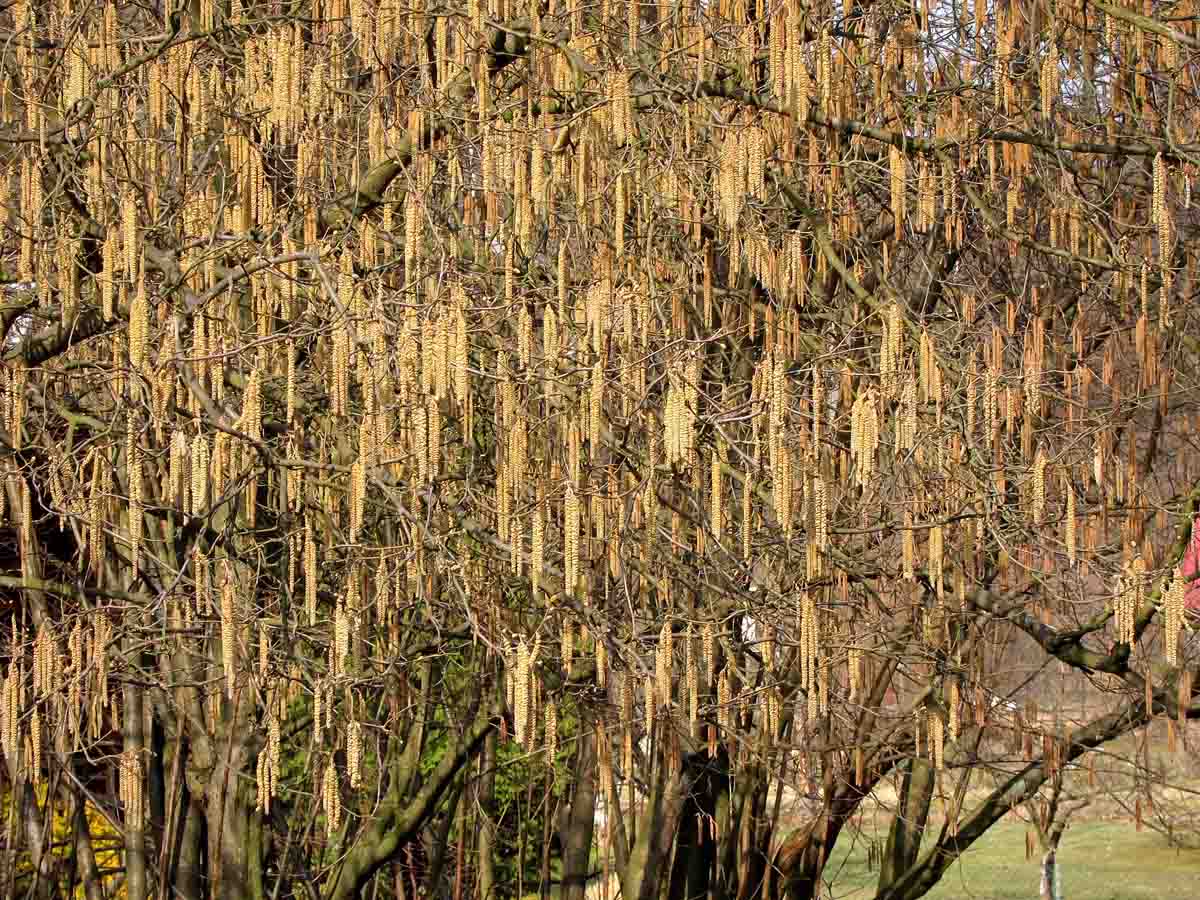 Fáze květu lísky - prášení jehněd