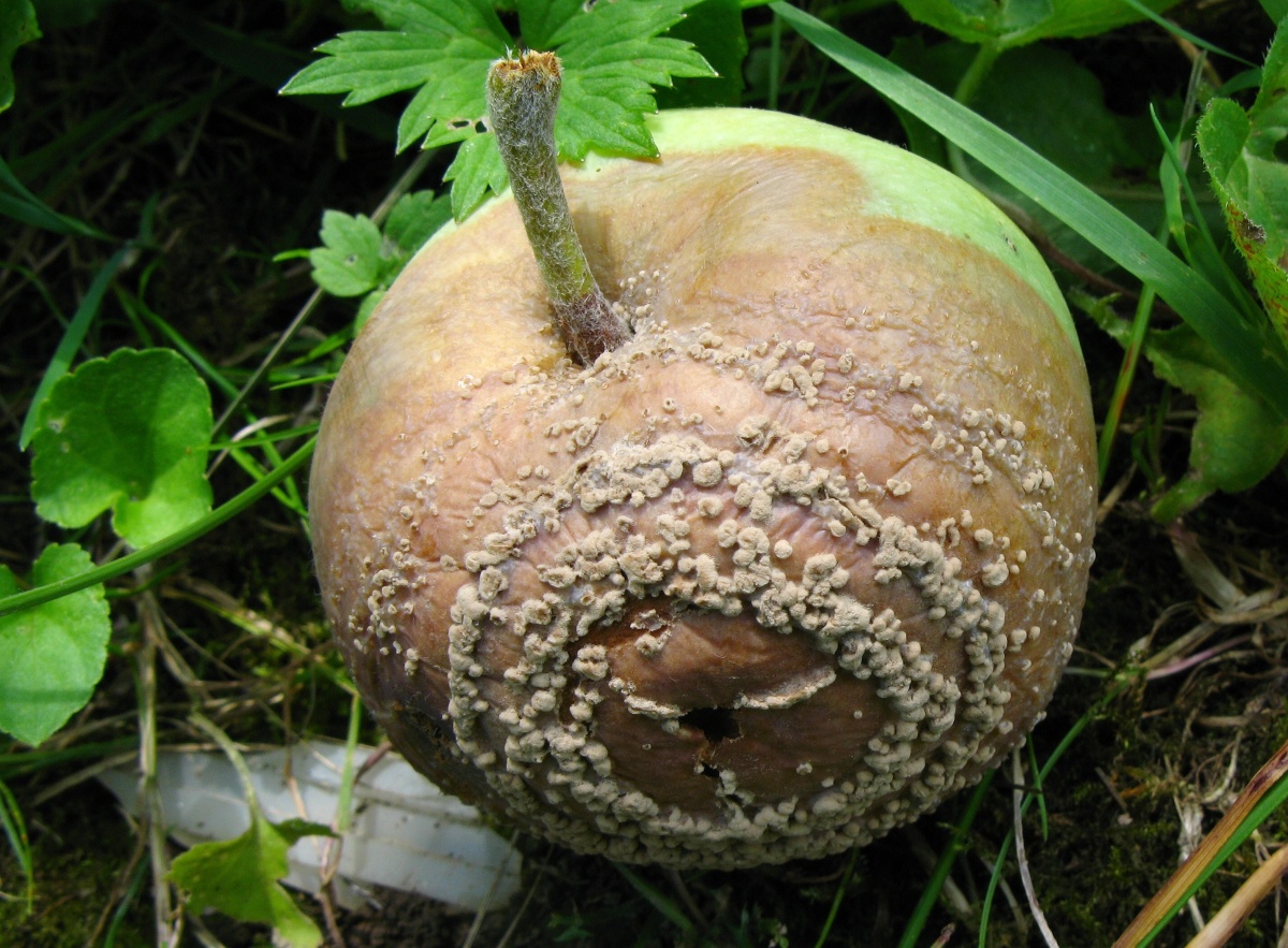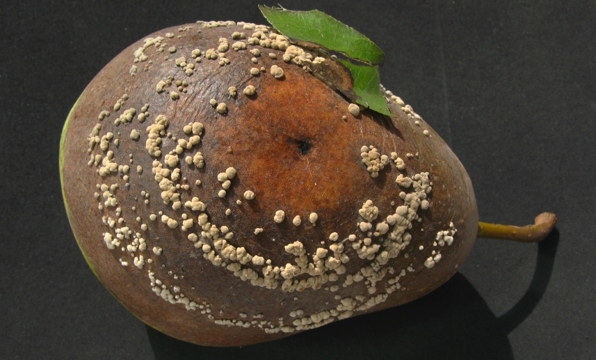 Při deštivém období se zvyšuje riziko poškození dozrávajících plodů moniliovou hnilobou. Původcem choroby je vřeckatá houba Monilinia laxa a někdy i její blízce příbuzná Monilinia fructigena. Houby lze od sebe rozlišit i makroskopicky - M. fructigena obvykle mívá konidiofory s konidiemi uspořádány spíše v soustředných kruzích a napadá častěji jádrové ovoce, zatímco M. laxa je převážně patogenem peckovin a kupky konidií pokrývají napadenou část plodu roztroušeně.