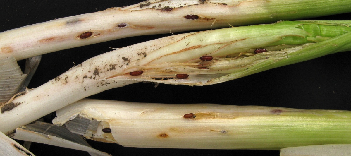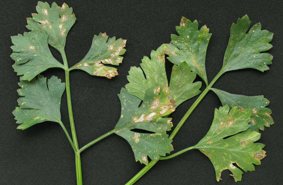 Na celeru sledujte výskyt septoriové skvrnitosti listů celeru (Septoria apiicola). Původce choroby je přenášen semeny. Porost ošetřete při prvních příznacích choroby některým z měďnatých přípravků: Flowbrix, Funguran-OH 50 WP, Champion 50WP, Korzar, Kuprikol 250 SC) nebo přípravkem: Ortiva, Difcor 250 EC, Score 250 EC a Zato. V intervalu 10 až 14 dnů ošetření zopakovat. Nejlepší ochranou je zdravé namořené osivo, popřípadě osivo nejméně tři roky staré.