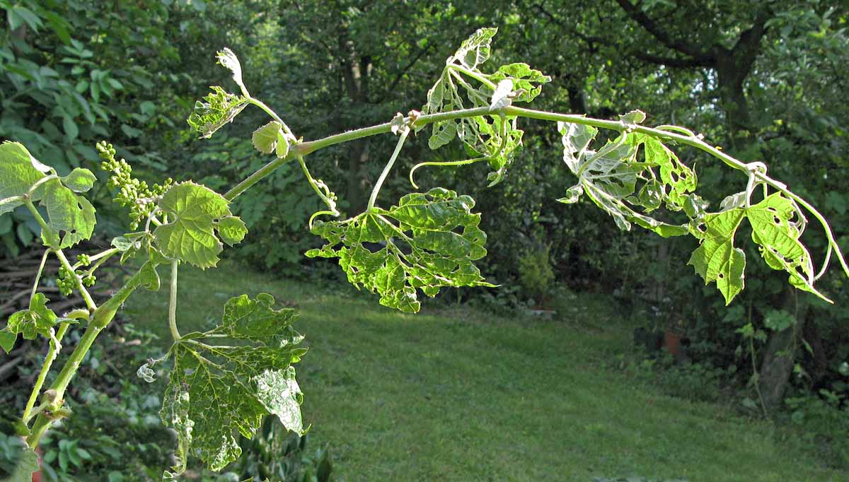 Příznaky poškození hálčivcem révovým