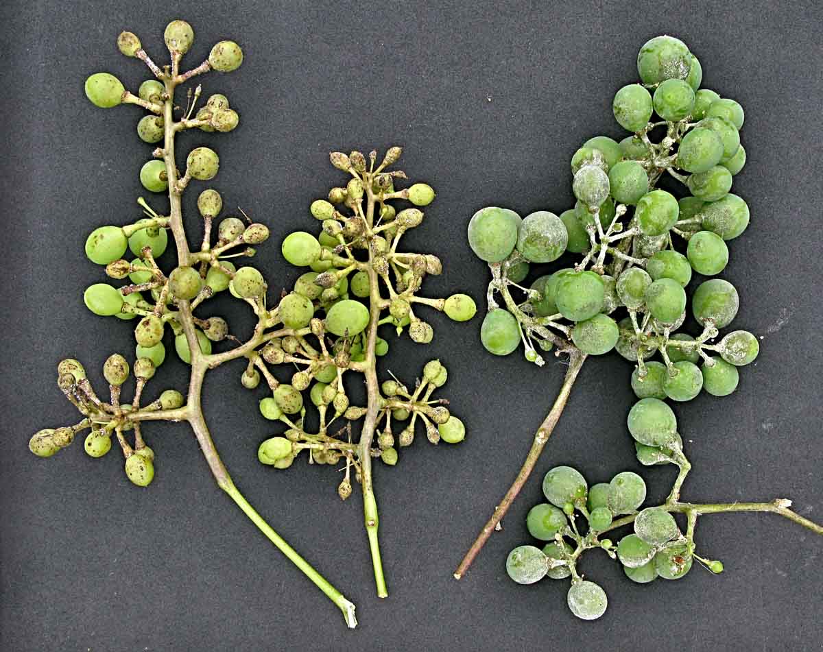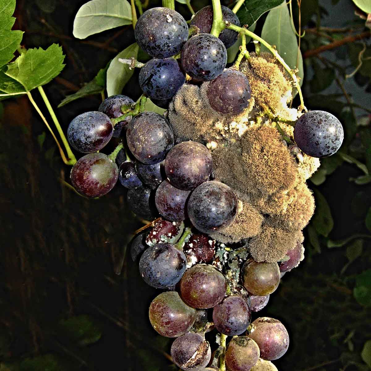 Plíseň révy (vlevo) a padlí révy na bobulích