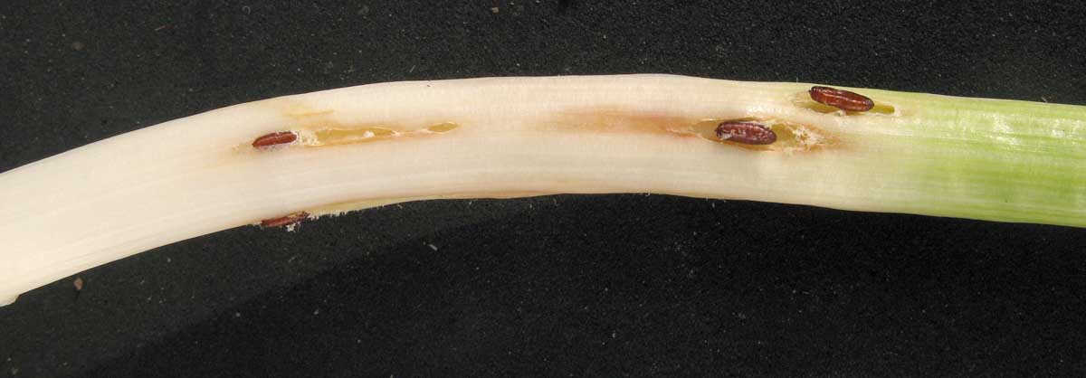 Na menších plochách může také silně škodit vrtalka pórová. Nejvíce bývají poškozovány pozdní odrůdy póru druhou generací tohoto škůdce. Ochrana spočívá hlavně v nepřímých agrotechnických opatřeních. Pyretroidy: Decis Mega, Dinastia se aplikují s přídavkem smáčedla v době letu dospělců před vykladením vajíček. K dosažení dostatečné účinnosti je nutná cílená ochrana na základě sledování letu mušek podzimní generace (srpen, září). Ošetření je účelné jen v době hromadného letu mušek kladoucí vajíčka. Pro zajištění účinku je vhodné ošetření 2–3× opakovat. Na zahrádkách a menších plochách pěstovaného póru je poměrně dobrou ochranou včasné pokrytí rostlin (tj. před letem dospělců) netkanou textilií.