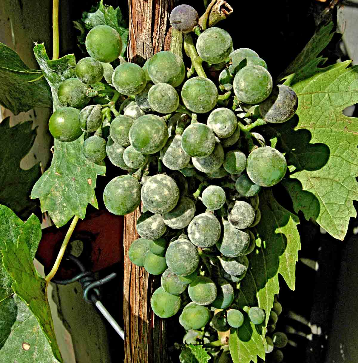 Padlí révy (Erysiphe necator) - Ve fázi bobule velikosti hrachu končí období vysoké citlivosti mladých hroznů i k napadení padlím. Vnímavost k novému napadení však končí až v období počátku zrání (zaměkání). Při rozhodování o intenzitě ochrany je třeba zohlednit vyrovnanost vývoje hroznů a intenzitu ochrany přizpůsobit k infekci vnímavějším vývojově opožděným hroznům.