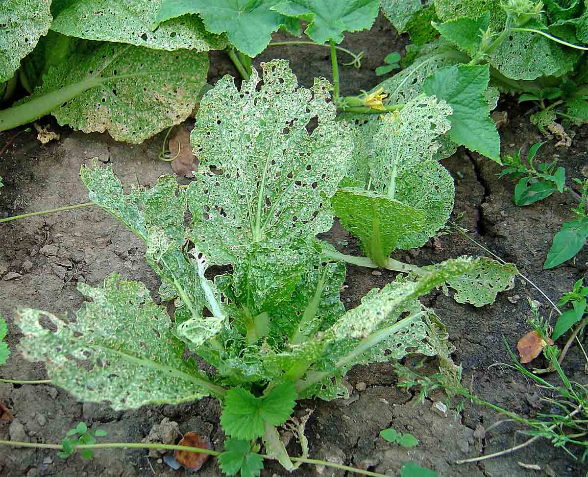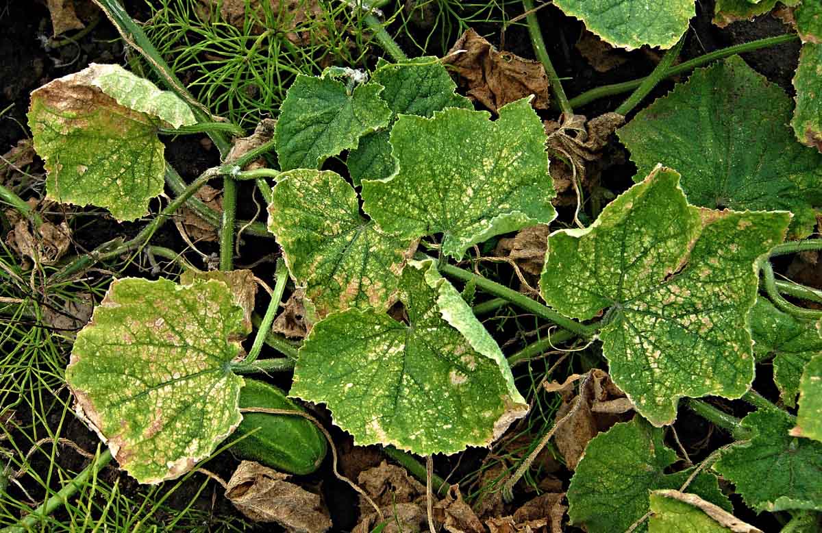 Svilušky na okurkách - poškození listů