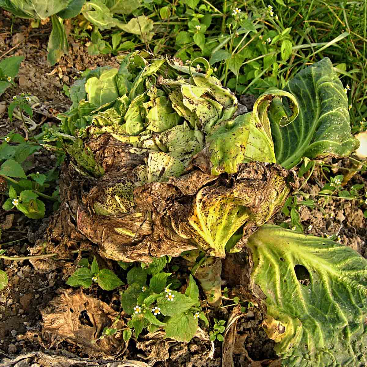 Pekingské zelí poškozené dřepčíky