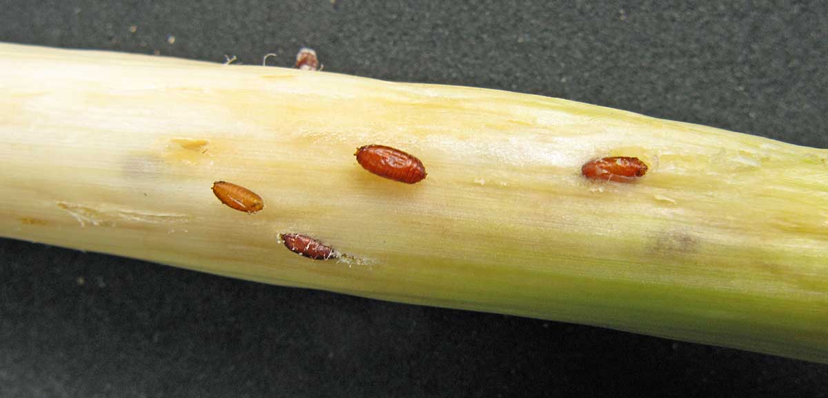 Obdobně mohou vyvinuté hlávky poškodit chodbami i slimáci a slimáčci.
