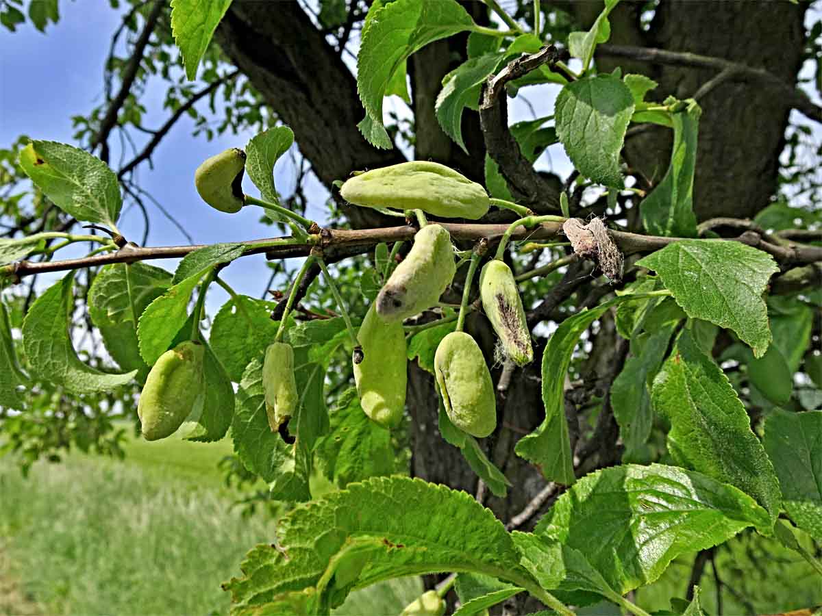 Při vlhčím a chladnějším průběhu jara na rizikových lokalitách (zvláště ve vyšších polohách) nelze vyloučit poškození plodů švestek puchrovitostí švestek (Taphrina pruni). Na jaře roku 2016 bylo na střední Moravě v některých lokalitách touto chorobou napadeno až 90 % švestek, mirabolánu a dalších peckovin. Houba přezimuje myceliem ve větvích nebo blastosporami (kvasinkovité mycelium) na šupinách pupenů. K infekci dochází na jaře v období kvetení stromů. Z infikovaných květů se tvoří deformované plody, které rostou rychleji než zdravé. Napadené plody jsou světlejší, abnormálně se prodlužují (dorůstají až 5–7 cm), nakonec jsou protáhlé, mírně zakřivené, mají houbovou vůni, jejich povrch je pokrytý bílým povlakem vřecek. Plody bývají uvnitř duté a jsou bez pecky. Deformované plody (puchry, bouchoře) postupně hnědnou, zasychají a opadávají. Silnější výskyty obecně bývají zejména ve výše položených podhorských oblastech, ale při příznivých podmínkách pro infekci byly významné výskyty zaznamenávány i v nižších polohách. Výrazné rozdíly jsou v náchylnosti odrůd. Jako velmi náchylná je uváděna švestka Domácí velkoplodá. Škodlivost choroby je značná, může být napadeno 70 % i více plodů.