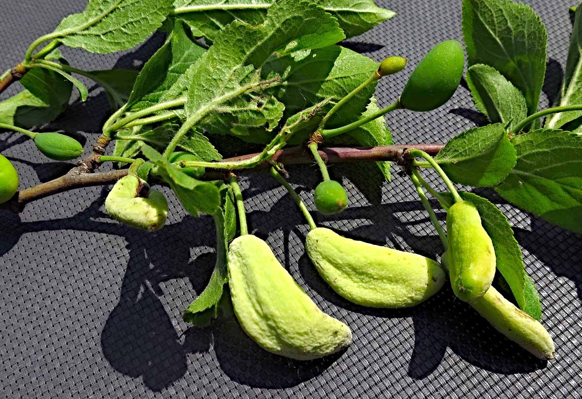 Při vlhčím a chladnějším průběhu jara na rizikových lokalitách (zvláště ve vyšších polohách) nelze vyloučit poškození plodů švestek puchrovitostí švestek (Taphrina pruni). Na jaře loňského roku (2016) bylo na Střední Moravě v některých lokalitách touto chorobou napadeno až 90 % švestek, mirabolánu a dalších peckovin. Houba přezimuje myceliem ve větvích nebo blastosporami (kvasinkovité mycelium) na šupinách pupenů. K infekci dochází na jaře v období kvetení stromů. Z infikovaných květů se tvoří deformované plody, které rostou rychleji než zdravé. Napadené plody jsou světlejší, abnormálně se prodlužují (dorůstají až 5–7 cm), nakonec jsou protáhlé, mírně zakřivené, mají houbovou vůni, jejich povrch je pokrytý bílým povlakem vřecek. Plody bývají uvnitř duté a jsou bez pecky. Deformované plody (puchry, bouchoře) postupně hnědnou, zasychají a opadávají. Silnější výskyty obecně bývají zejména ve výše položených podhorských oblastech, ale při příznivých podmínkách pro infekci byly významné výskyty zaznamenávány i v nižších polohách. Výrazné rozdíly jsou v náchylnosti odrůd. Jako velmi náchylná je uváděna švestka Domácí velkoplodá. Škodlivost choroby je značná, může být napadeno až 70 % plodů.