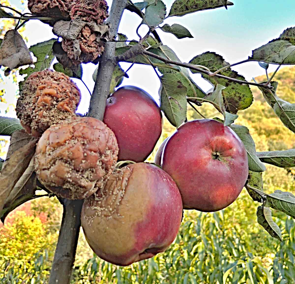 U jádrovin můžeme moniliniovou hnilobu (Monilinia fructigena) a řadu dalších skládkových chorob omezit, pokud provedeme pozdní ošetření před sklizní. Kadeřavost listů broskvoně (Taphrina deformans) patří u nás k všeobecně známé hospodářsky významné chorobě broskvoní. I když optimální termín pro první ošetření je doporučován až při nalévání (zvětšování) terminálních pupenů na jaře, v oblastech s pravidelným silným výskytem této choroby u náchylných odrůd, je vhodné také podzimní ošetření měďnatými fungicidy. Nejlépe v období po opadu listů, za suchého počasí při teplotách nad 7 °C.