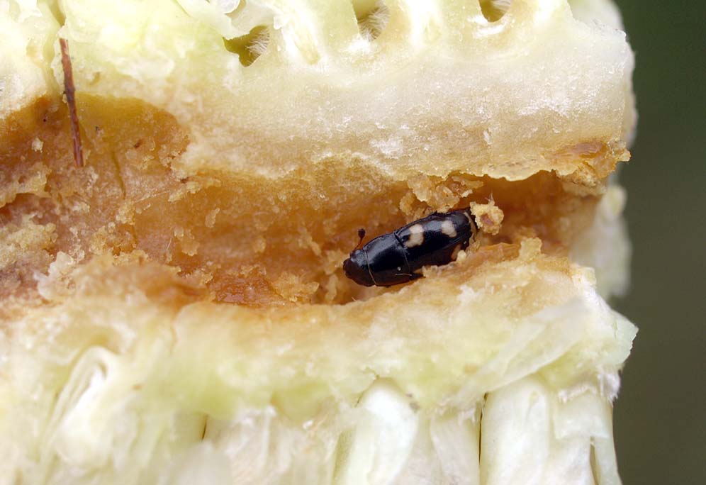 Obr 2: Leskňáček v poškozené palici kukuřice