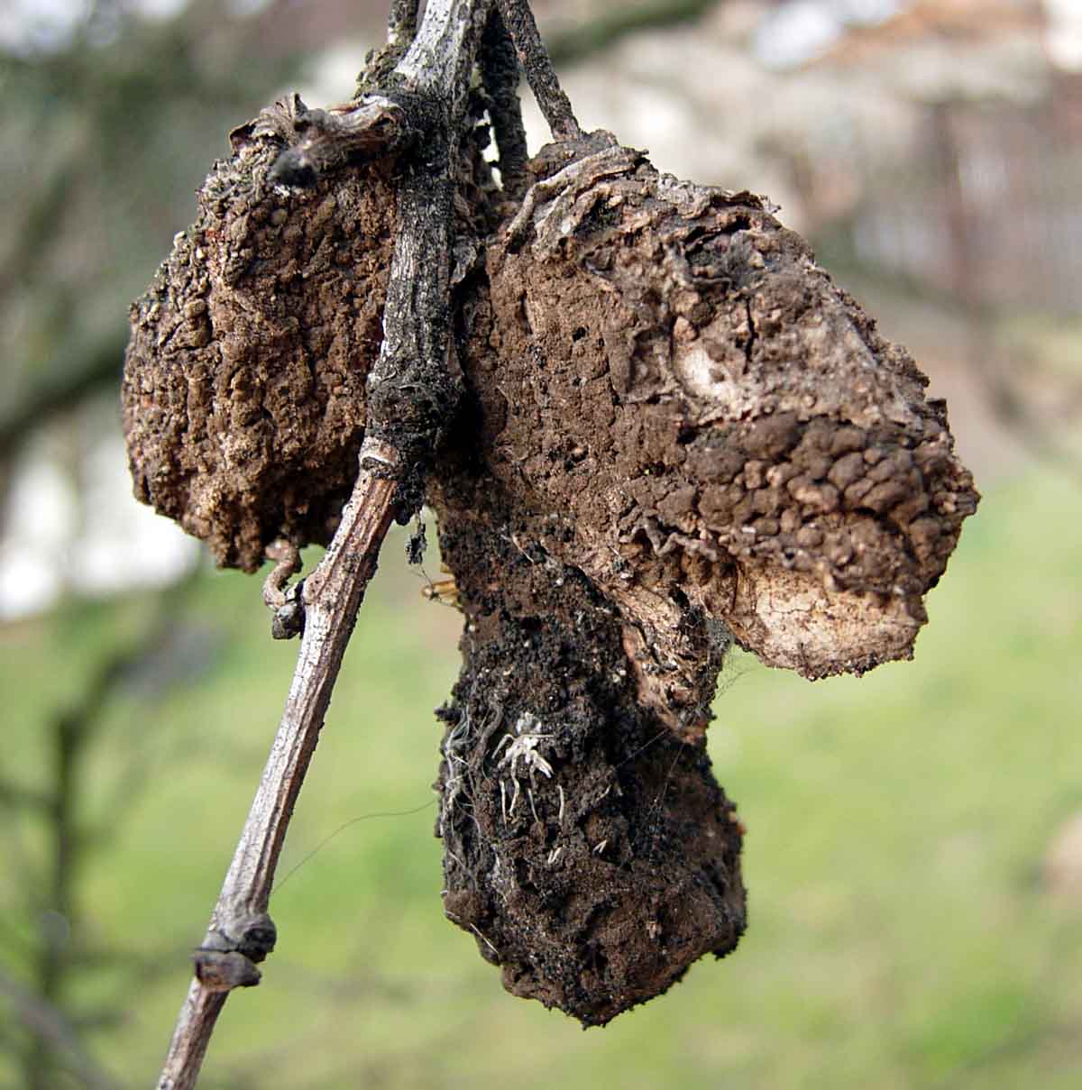 Zapomenuté mumifikované plody na větvích