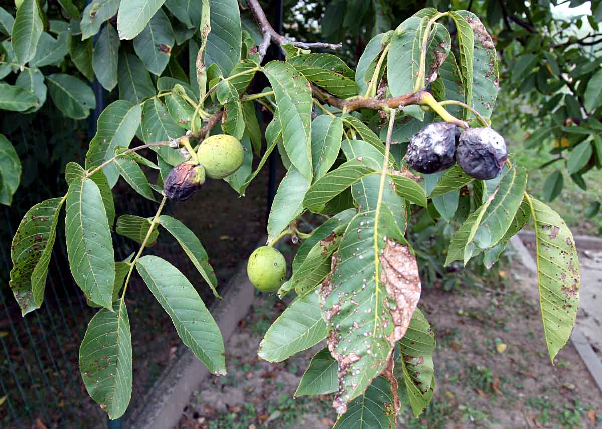 U vlašského ořešáku na napadených opadlých listech přezimuje závažná choroba hnědnutí listů ořešáku (Gnomonia leptostyla), a tak je možno pokračovat skoro u všech ovocných i okrasných druhů.