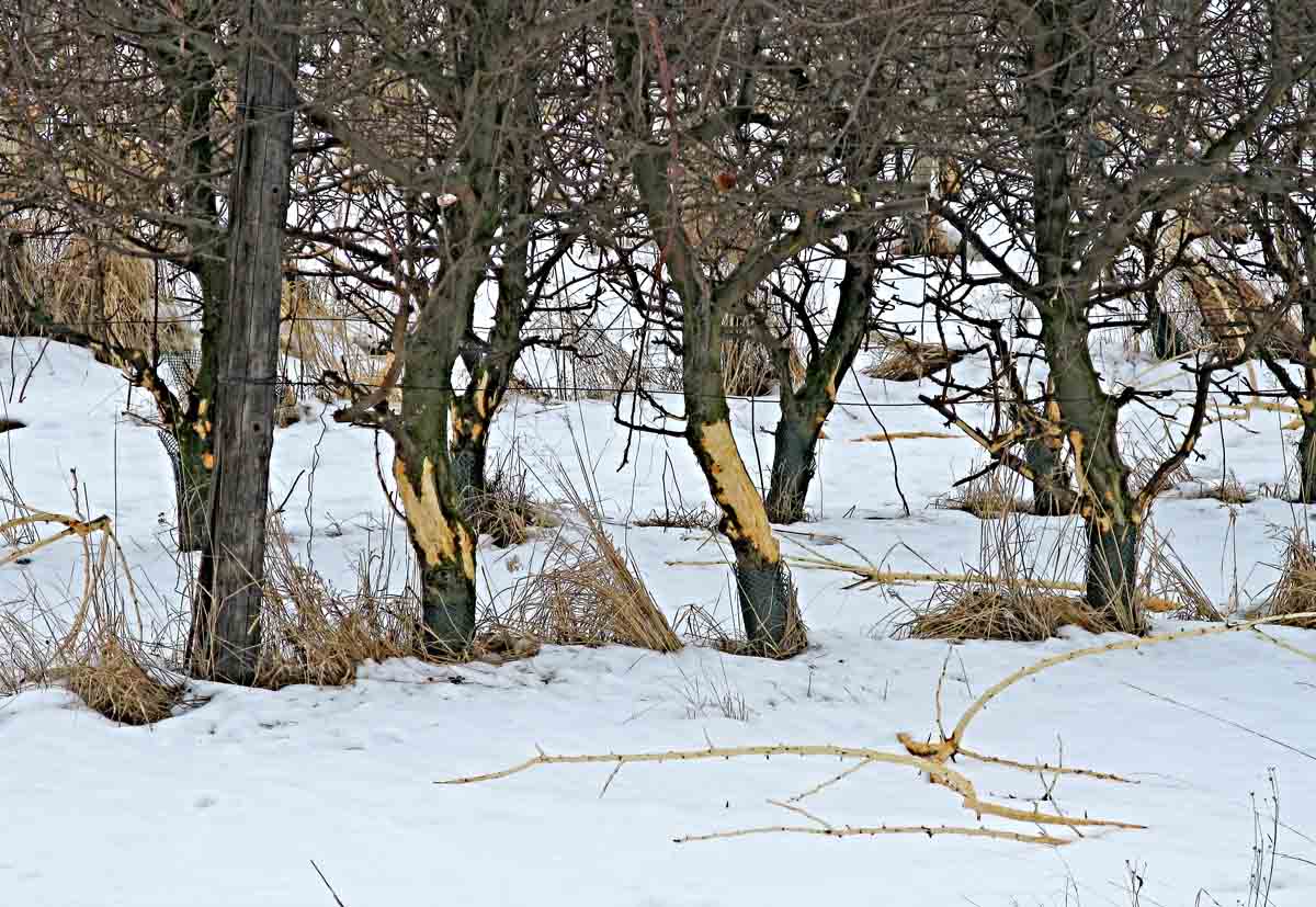 Sady a zahrádky v blízkosti polí a lesů často ohrožují nevítaní návštěvníci, zajíci nebo vysoká zvěř. Už na podzim, ale hlavně jakmile napadne sníh, ohryzávají kůru stromů. Ohrožené jsou zejména mladé stromky v prvních letech po výsadbě. Jednoduché oplocení někdy není dostatečnou ochranou. Proto je dobré dát na každý ohrožený stromek chránič z drátěného pletiva, plastu nebo ho obvázat chvojím. Odřezané čerstvé větvičky upevněné na stromcích by měly odvést počáteční zájem a současně upozornit na „škodnou“ v zahradě. Chrániče mají být tak vysoké, aby chránily i před zajícem, který se vzpřímí na zadních nohách. Když je vrstva sněhu vyšší, dokážou zajíci poškodit i dolní větve zákrsků. Mladé stromky můžete také preventivně ošetřit repelentním přípravkem proti okusu a ohryzu zvěří STOP Z aj.