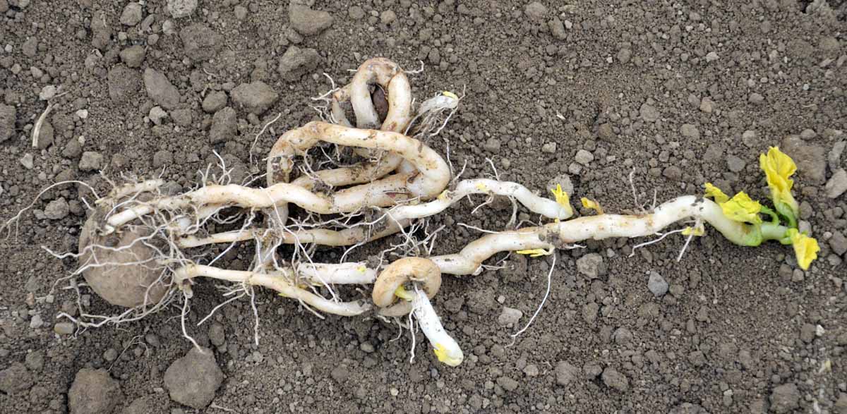 Deformace stolonů následkem utužení půdy