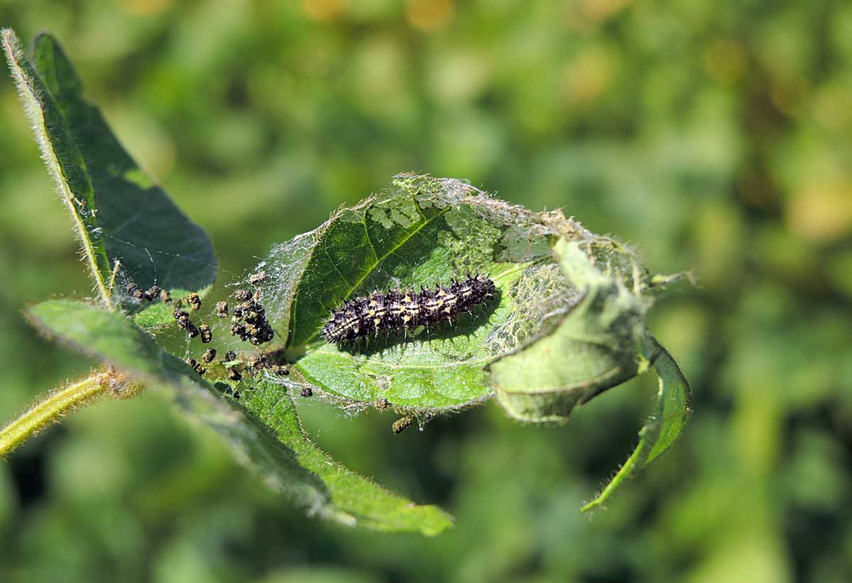 Na několika lokalitách jsme zjistili i vyšší výskyt housenek motýlů, zejména babočky bodlákové (Vanessa cardui), který překročil práh hospodářské škodlivosti, a proto bylo nutné ošetření pyretroidy.