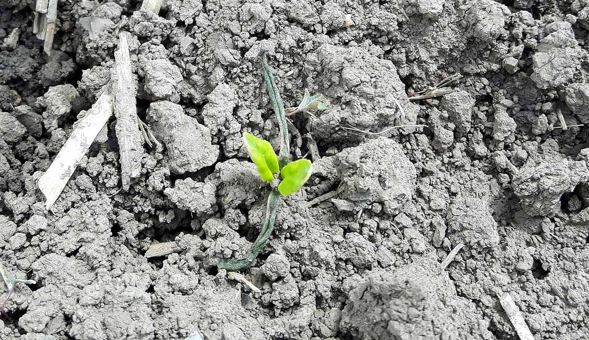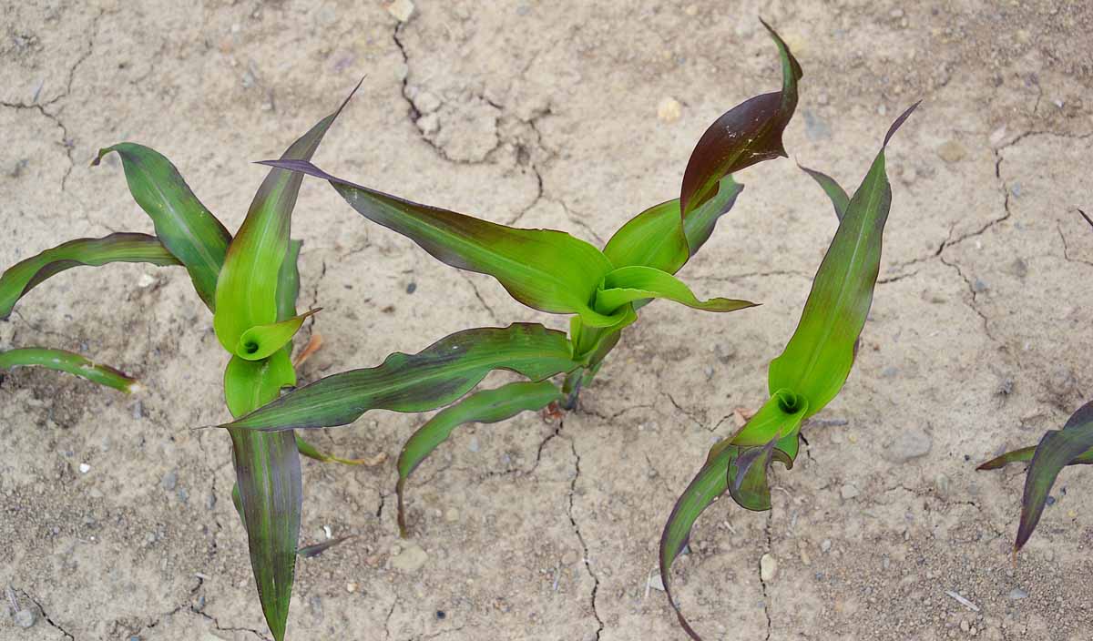 Nejvýznamněji působil z vlivů počasí mráz v posledním dubnovém týdnu. Poškodil polní plodiny na mnoha místech České republiky. Nejvíce byly škody pozorovány na cukrové řepě, kukuřici a řepce ozimé. Poškozen a zbrzděn v růstu byl i mák a poškození obilnin bylo ve formě jakési predispozice k dalšímu poškození aplikacemi kapalných hnojiv. U pšenice po mrazu byla silně narušena vosková vrstva a pokud někdo velmi spěchal s aplikací hnojiva DAM po mrazu, došlo k silnému popálení listové plochy. Mladé rostliny cukrovky jsou obvykle schopny vzdorovat mrazu do max. -3 °C, nejcitlivější jsou děložní listy, pokud již jsou vyvinuté první pravé listy mohou být rostliny cukrovky odolnější krátkodobě až do teploty – 5°C. Na obr. 1 je rostlina cukrovky s děložními listy zcela poškozenými mrazem, první pravé listy jsou zežloutlé, ale rostlina přežije. Řepka ozimá je velmi citlivá k podzimním jarním mrazům v době prodlužovacího růstu až kvetení, na obr. 2 je porost řepky poškozený dubnovými mrazy, vrcholy rostlin jsou zkrouceny směrem dolů, může dojít i praskání stonků, často se při silnějších jarních mrazech v době kvetení řepky diskutuje poškození vitality pylu v květech řepky. Kukuřice poškozená mrazem na jaře zpomalí růst, na rostlinách dojde ke ztrátě turgoru, objevit i nekrózy listů. Chladné počasí může u kukuřice také způsobit zablokování příjmu některých živin, například fosforu (obr. 3).