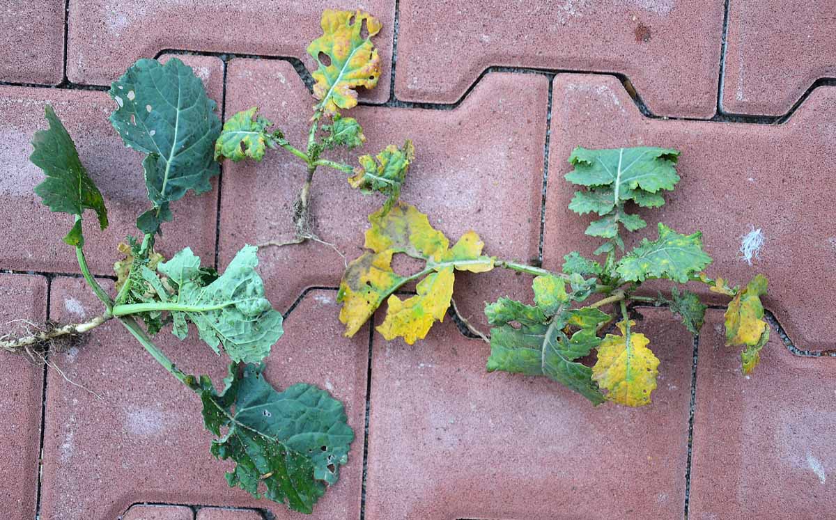 Obr. 8: Strniště řepky silně napadené hlízenkou obecnou