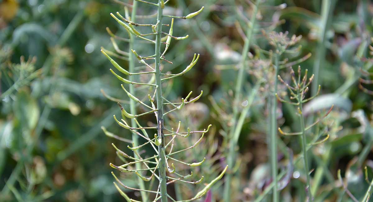 Obr. 5: Deficience síry v řepce - příznaky na šešulích