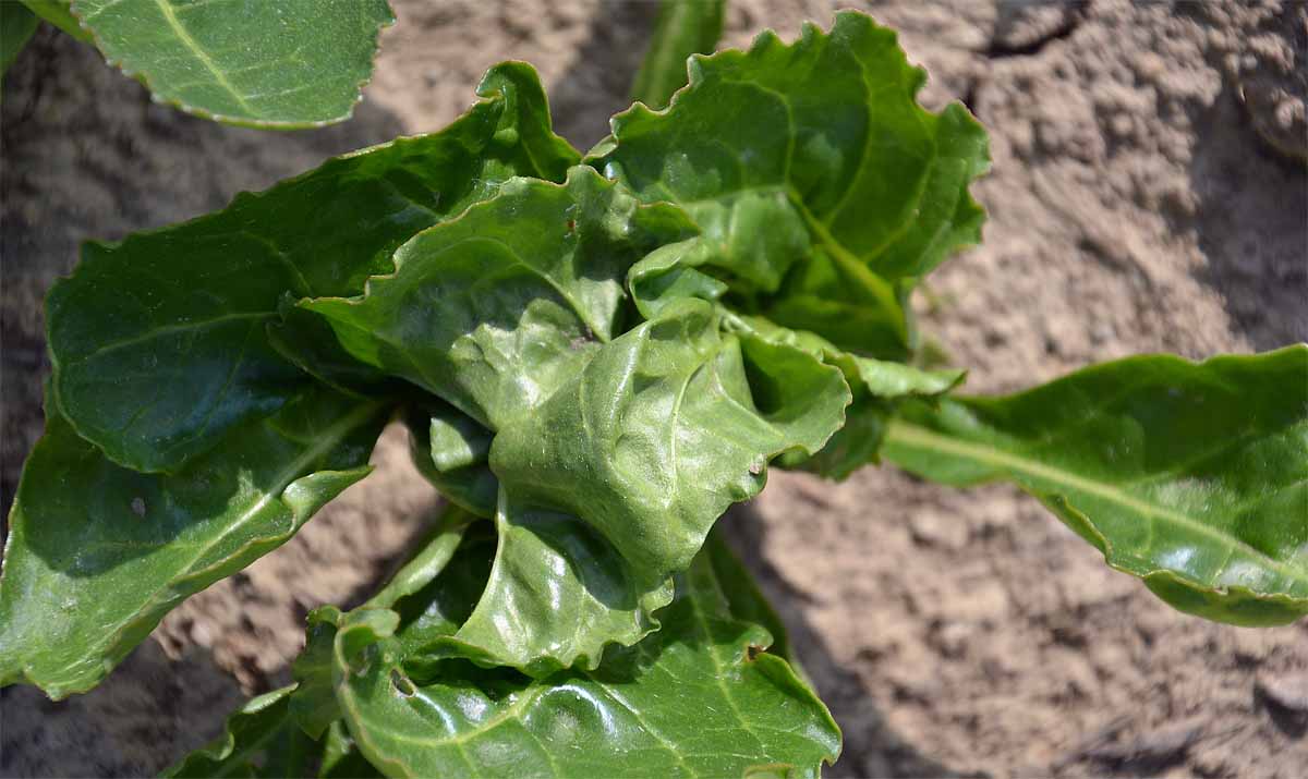 Stále je potřeba velké obezřetnosti při aplikaci přípravků na ochranu rostlin. Cukrovka jako plodina patří k těm, kde náročnost ochrany rostlin je velmi vysoká a nebezpečí poškození je vysoce aktuální. Na obr. 6 je viditelné jasné poškození přípravkem chlorsulfuron, který byl zaměněn za v cukrovce aplikovanou a povolenou sulfonylmočovinu triflusulfuron-methyl. Často se stává, že při aplikaci herbicidů, které obsahuji fenoxyoctové kyseliny (2,4D, MCPA a další), dojde k mikroúletu na sousední pozemky. Pokud na takovém pozemku je citlivá plodina, např. cukrovka, lze posléze pozorovat poškození rostlin, které vypadají „hlávkový salát“, listy jsou slepené, nové srdečkové listy stěží prorůstají (obr. 7). Obvykle však rostliny odrostou.