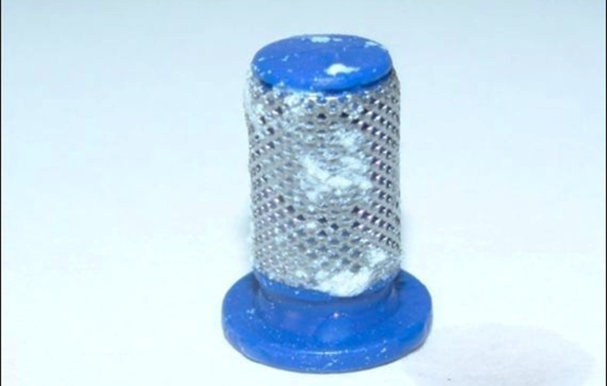 Obr. 1: Ucpání tryskových sít v důsledku špatného rozmíchání práškového pesticidu