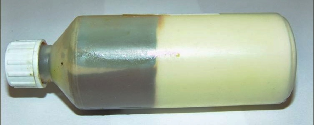 Obr. 3: Tvorba sraženiny v důsledku nevhodného postupu při míchání pesticidů