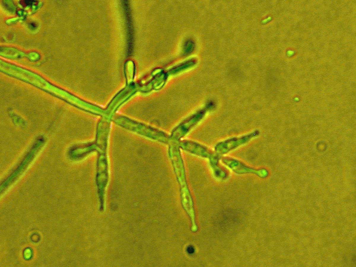 Obr. 2: Parazitace Trichoderma harzianum na hyfách Sclerotinia sclerotiorum