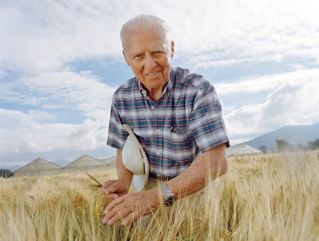 Obr. 2: N. Borlaug - americký šlechtitel norského původu, nositel Nobelovy ceny míru, člověk který svými polozakrslými pšenicemi uchránil miliony lidí od hladomoru a vykonal tak více práce pro lidstvo než vlády, politici (achievement.org)