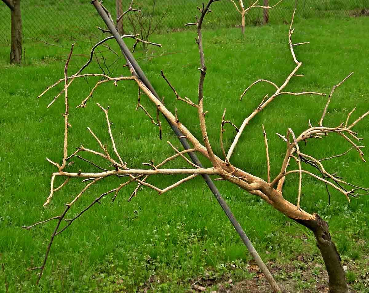 Na holých větvích často objevíme poškození, která je třeba odstranit. Nejčastěji jsou to zarostlé úvazky, zbytky a rány po odlomených větvích, mumifikované plody či zámotky škůdců. Dobře si prohlédneme také kůly, opěry, konstrukce, po kterých vedeme ovocné nebo okrasné dřeviny. Růstem větví nebo uvolněním konstrukce vznikají místa, která stromům odírají kůru.