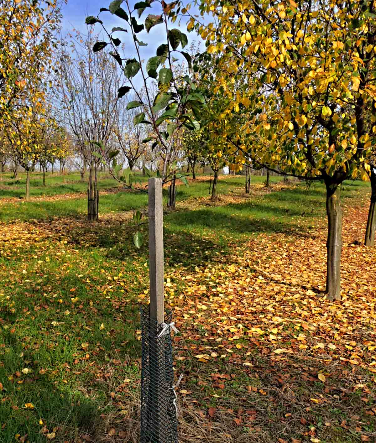 Sady a zahrádky v blízkosti polí a lesů často ohrožují nevítaní návštěvníci, zajíci nebo vysoká zvěř. Už na podzim, ale hlavně jakmile napadne sníh, ohryzávají kůru stromů. Ohrožené jsou zejména mladé stromky v prvních letech po výsadbě. Jednoduché oplocení někdy není dostatečnou ochranou. Proto je dobré dát na každý ohrožený stromek chránič z drátěného pletiva, plastu nebo ho obvázat chvojím. Odřezané čerstvé větvičky upevněné na stromcích by měly odvést počáteční zájem a současně upozornit na škůdce v zahradě. Chrániče mají být tak vysoké, aby chránily i před zajícem, který je vzpřímený na zadních nohách. Když je vrstva sněhu vyšší, dokážou zajíci poškodit i dolní větve zákrsků. Mladé stromky můžete také preventivně ošetřit repelentním přípravkem proti okusu a ohryzu zvěří Morsuvin aj.