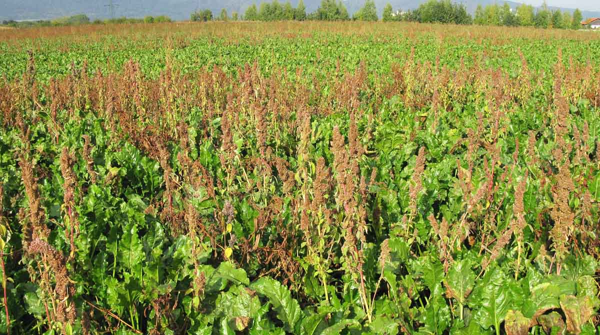 Cukrovka zaplevelená laskavcem