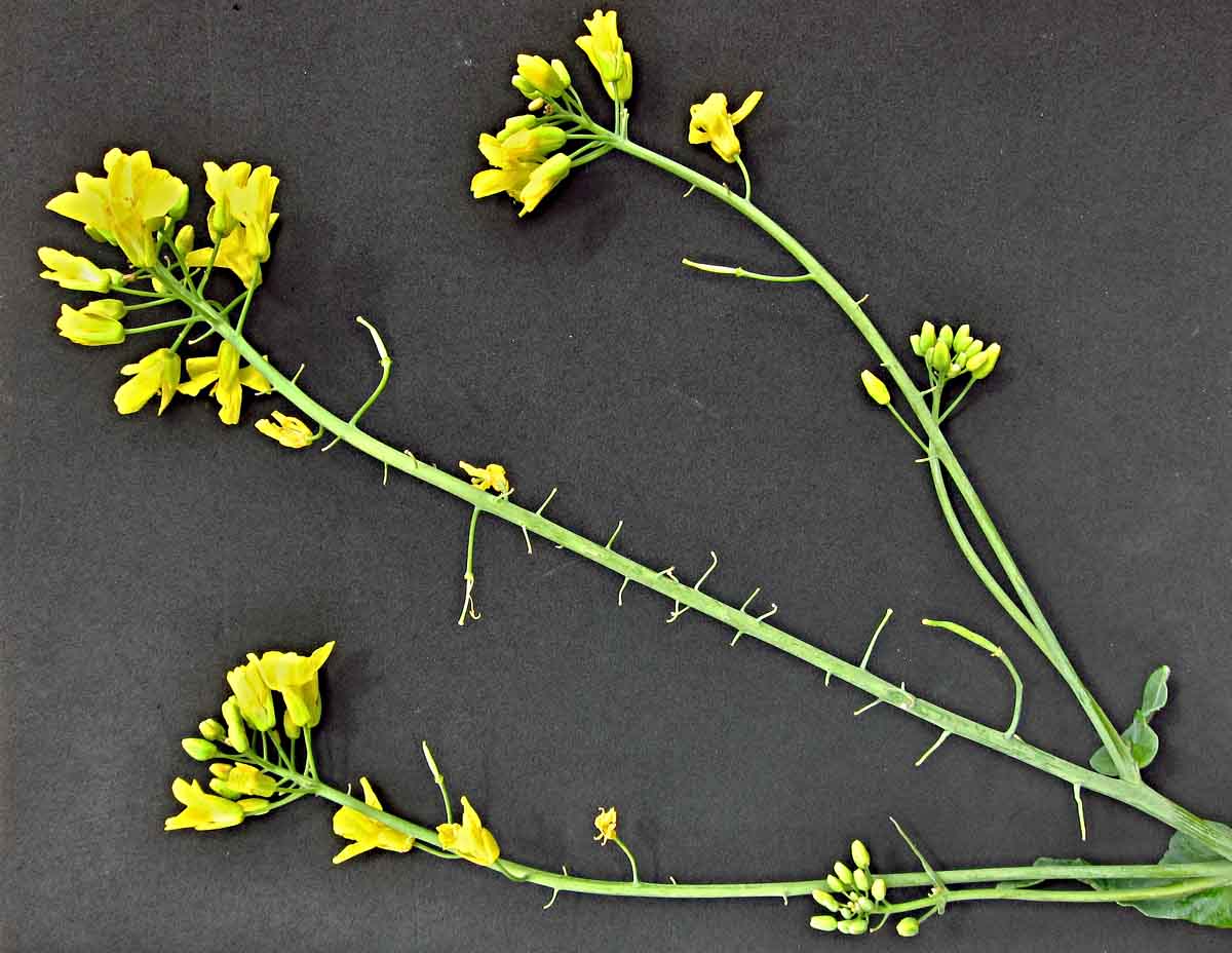 Květenství řepky poškozené blýskáčky